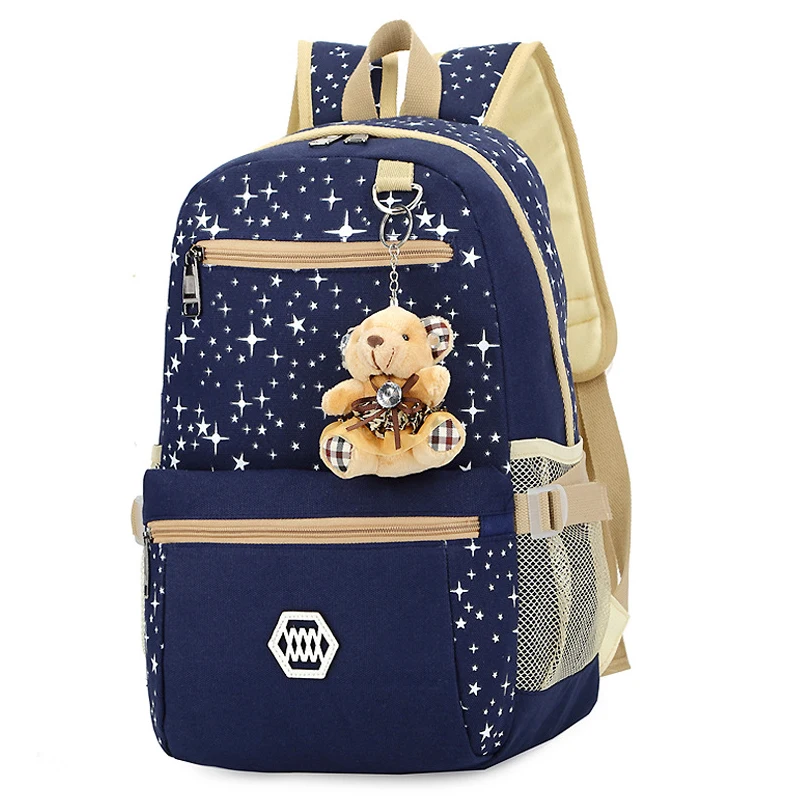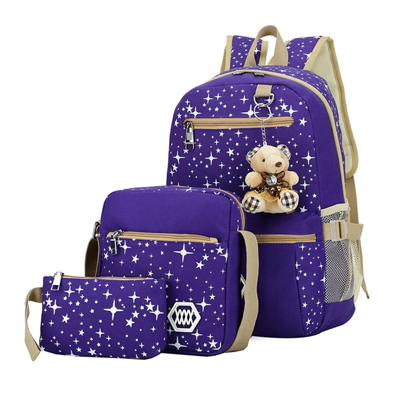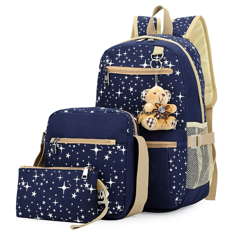 Custom logo Fashion Canvas Rucksack Set Book Women Girls Backpack School Bag
