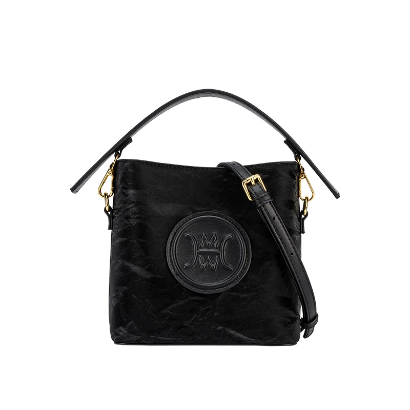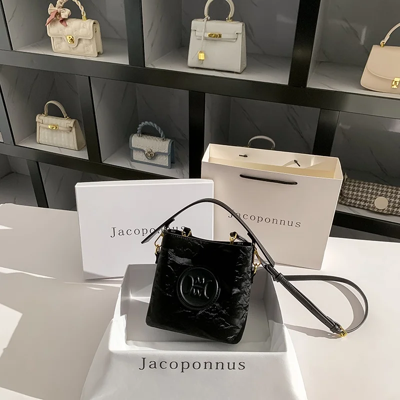 2026 Women's Black Waterproof Bucket Bag New Design Zipper PU Light Luxury Versatile Crossbody