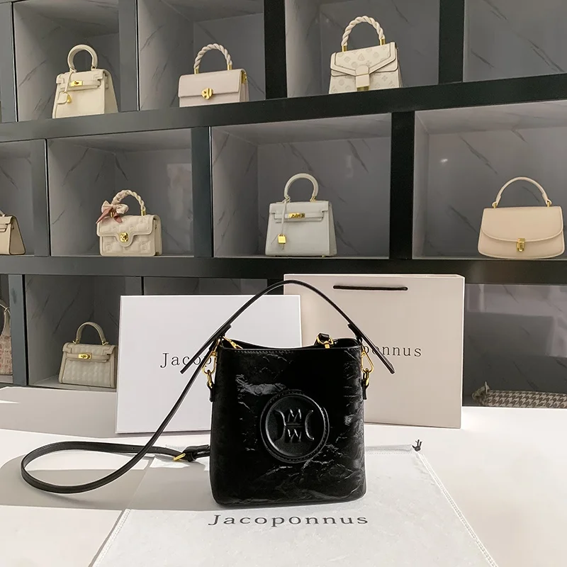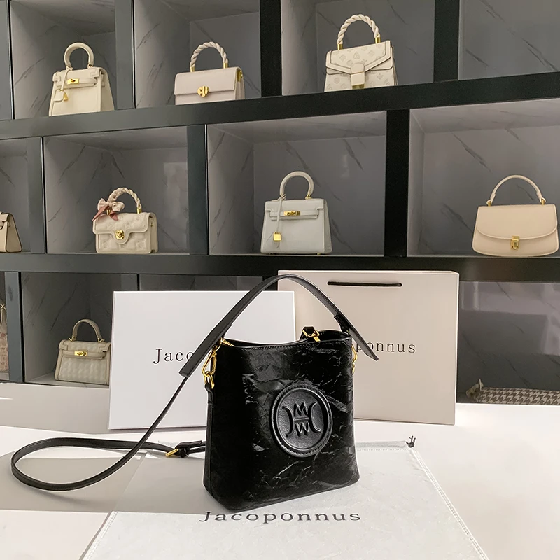 Designer Vintage Popular Ladies Women Crossbody Shoulder Hand Bags Fashion Casual Large Capacity Cowhide Leather Bucket Bag 2026