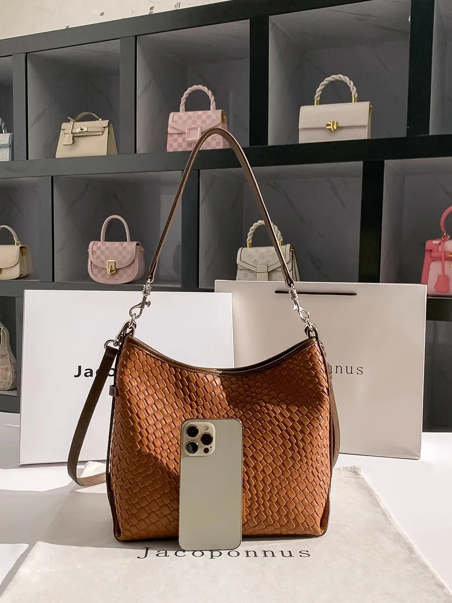 Designer Vintage Popular Ladies Women Crossbody Shoulder Hand Bags Fashion Casual Large Capacity Cowhide Leather Bucket Bag 2026