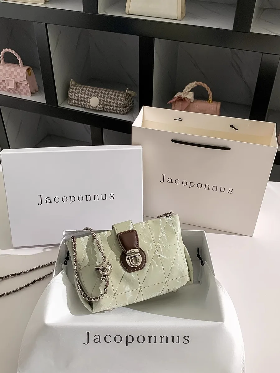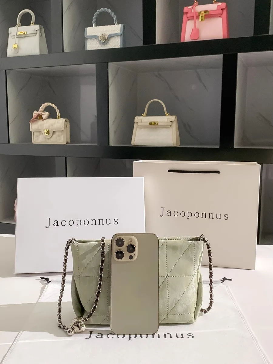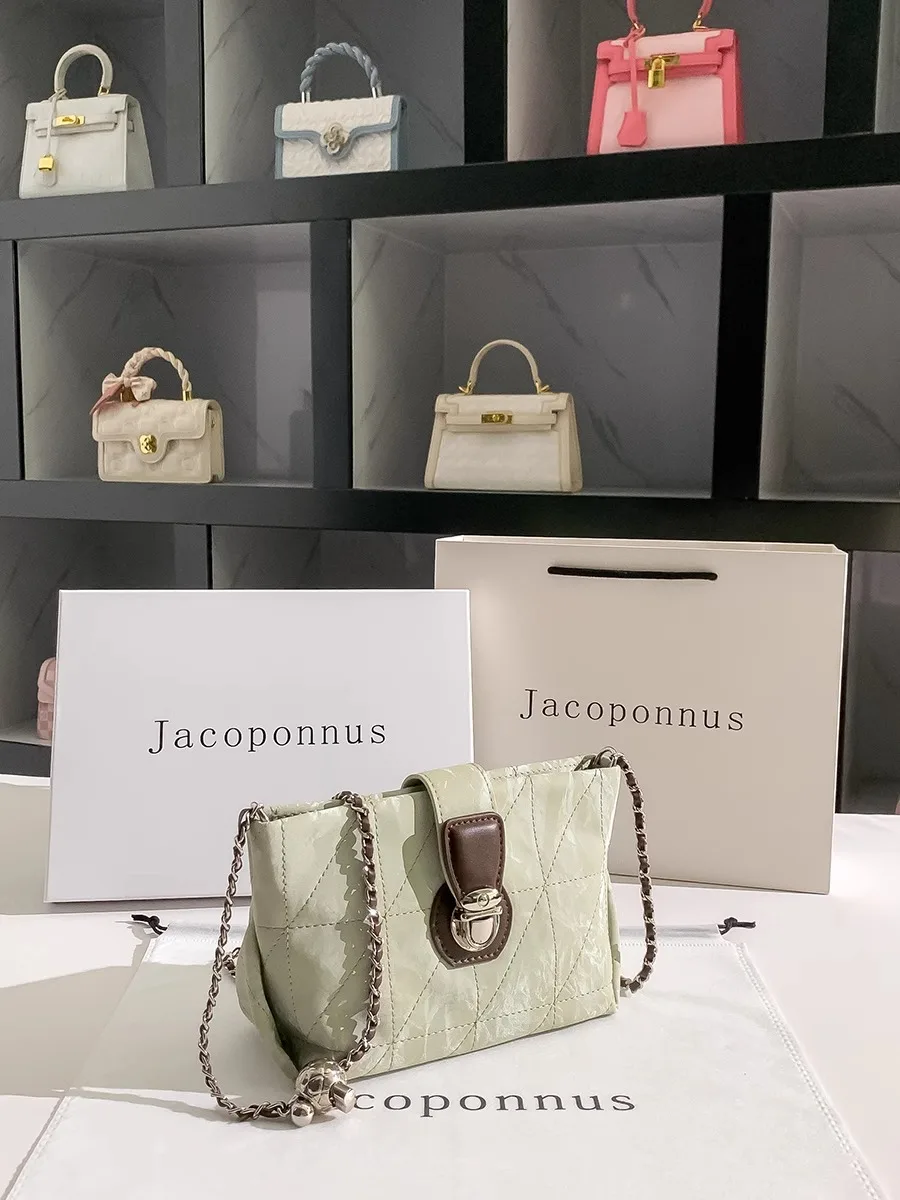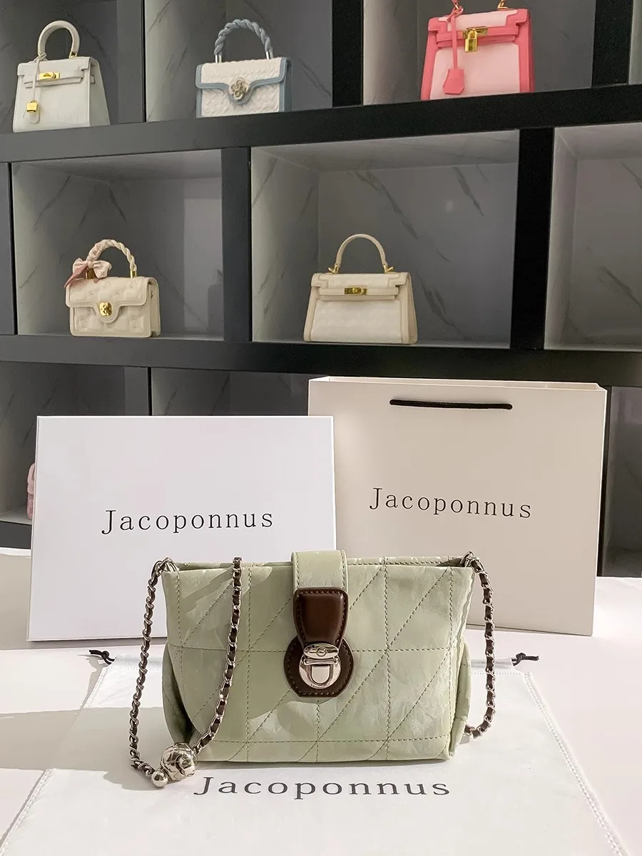 Jacoponnus 2026 Luxury Ladies Shopping Bag Green Metal Strap Crossbody Chains Versatile Casual Style Fashionable PU for Winter