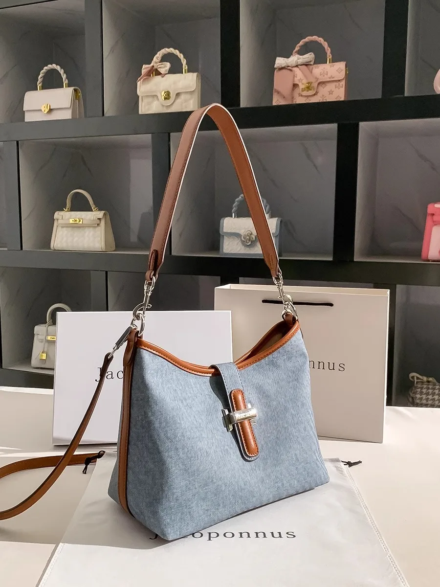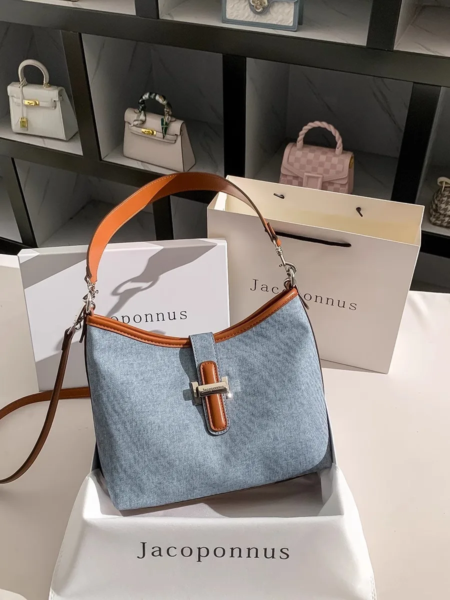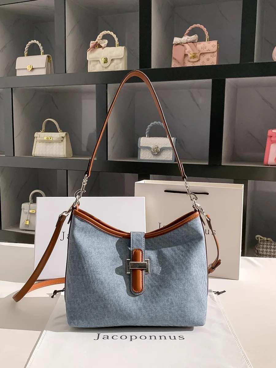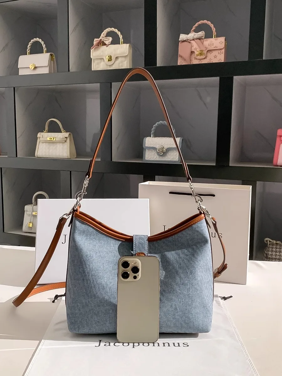 2026 New Arrival Branded Designer Ladies Handbag Tote Bag High Quality Vegan Leather Denim Blue Wear-Resistant Embroidery Summer