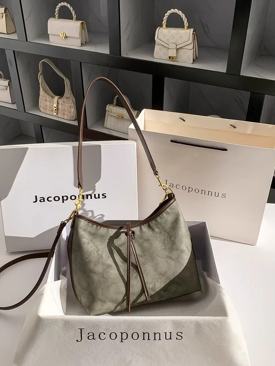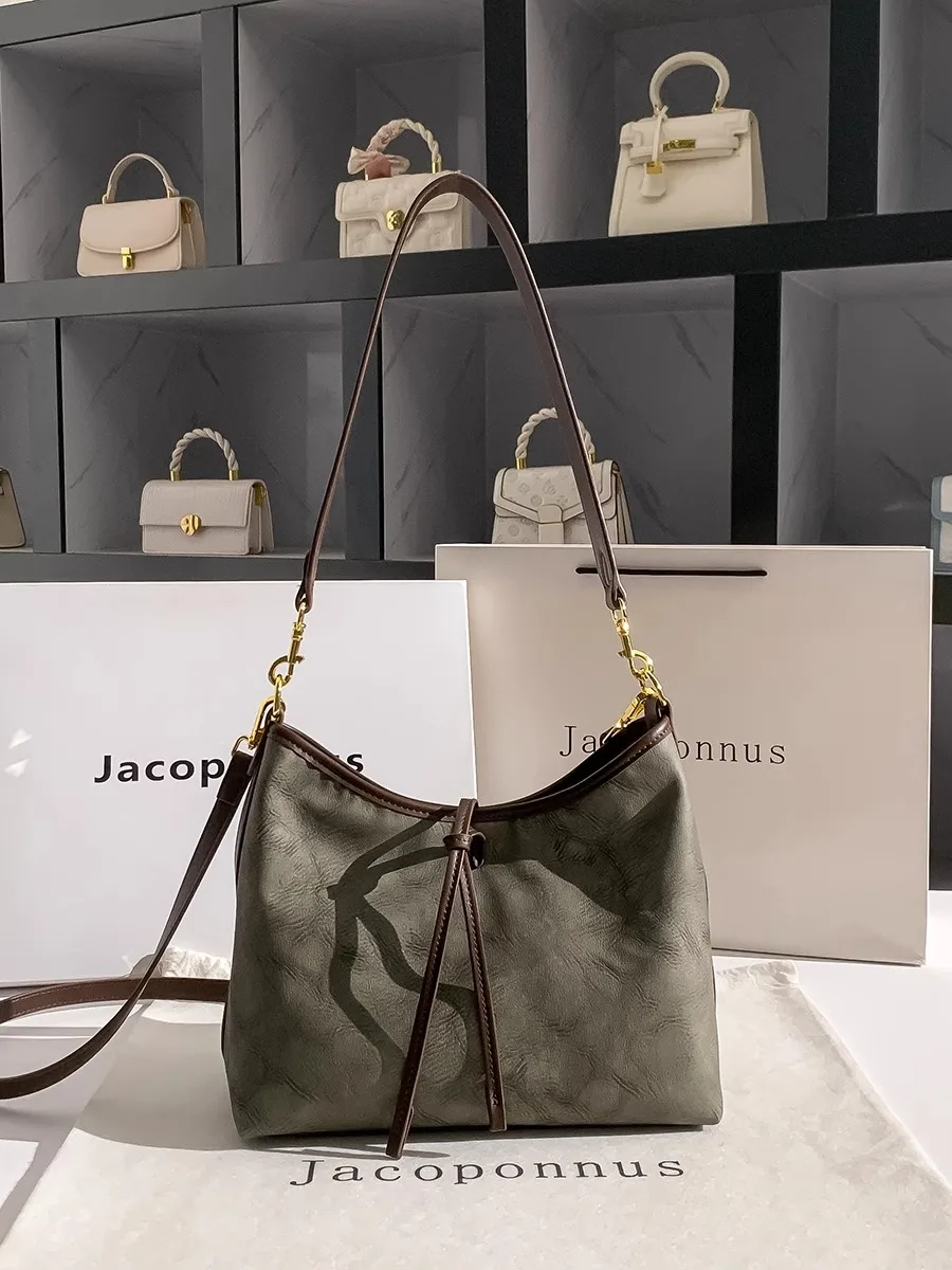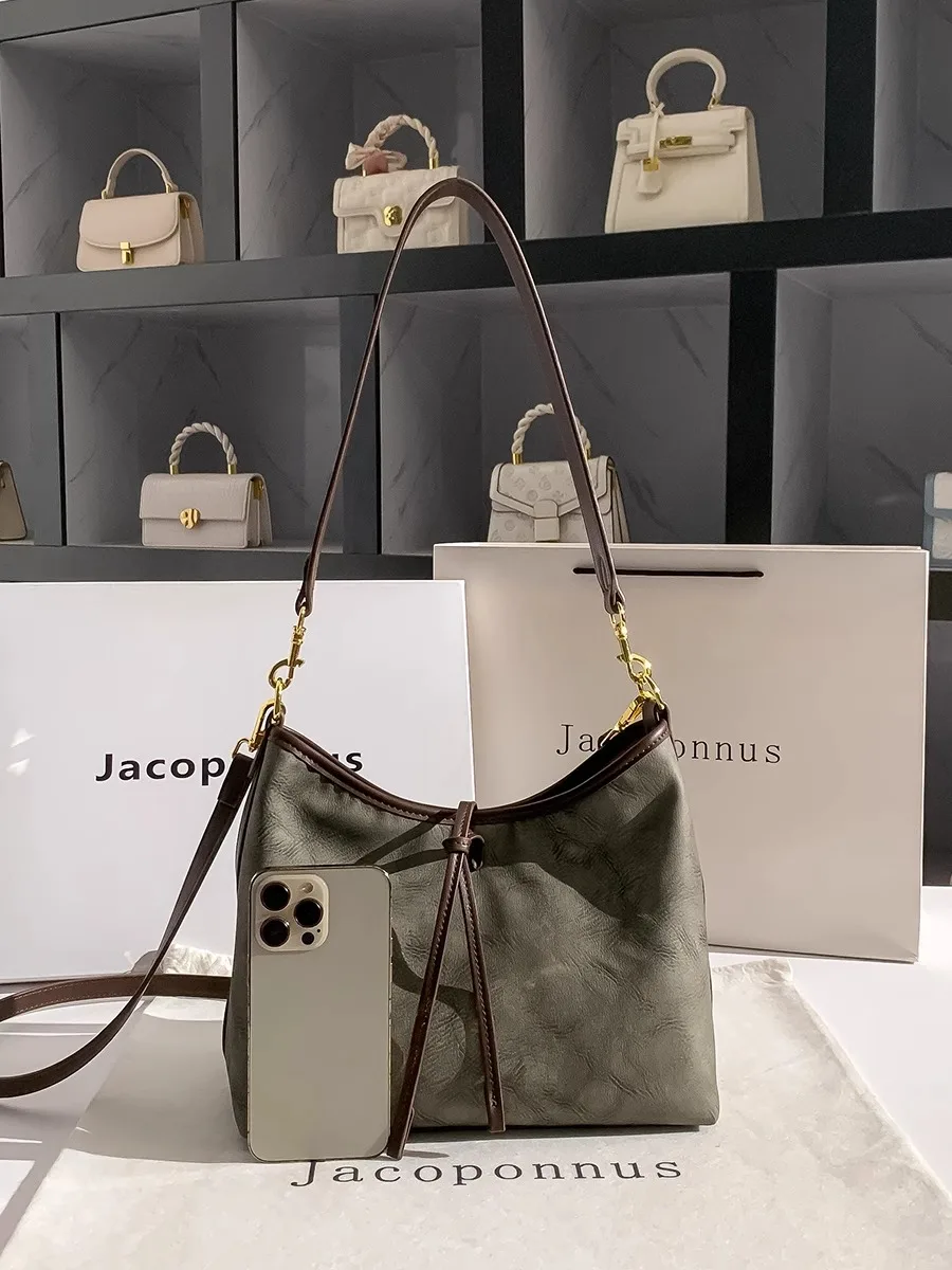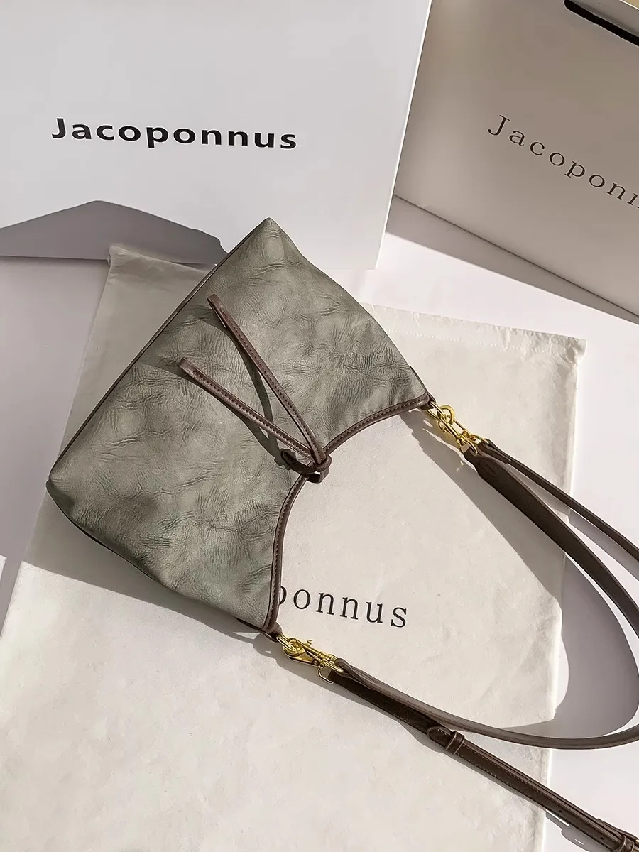 Designer Vintage Popular Ladies Women Crossbody Shoulder Hand Bags Fashion Casual Large Capacity Cowhide Leather Bucket Bag 2026