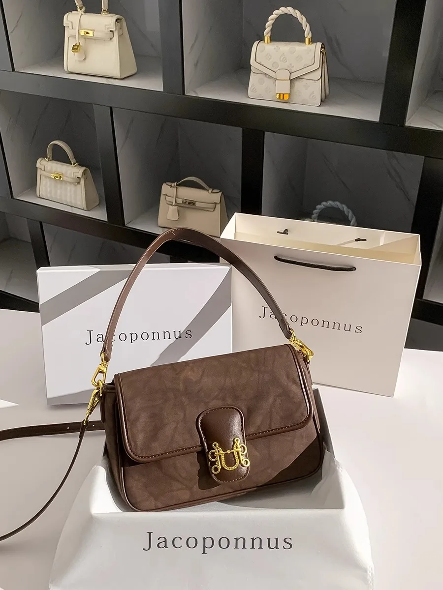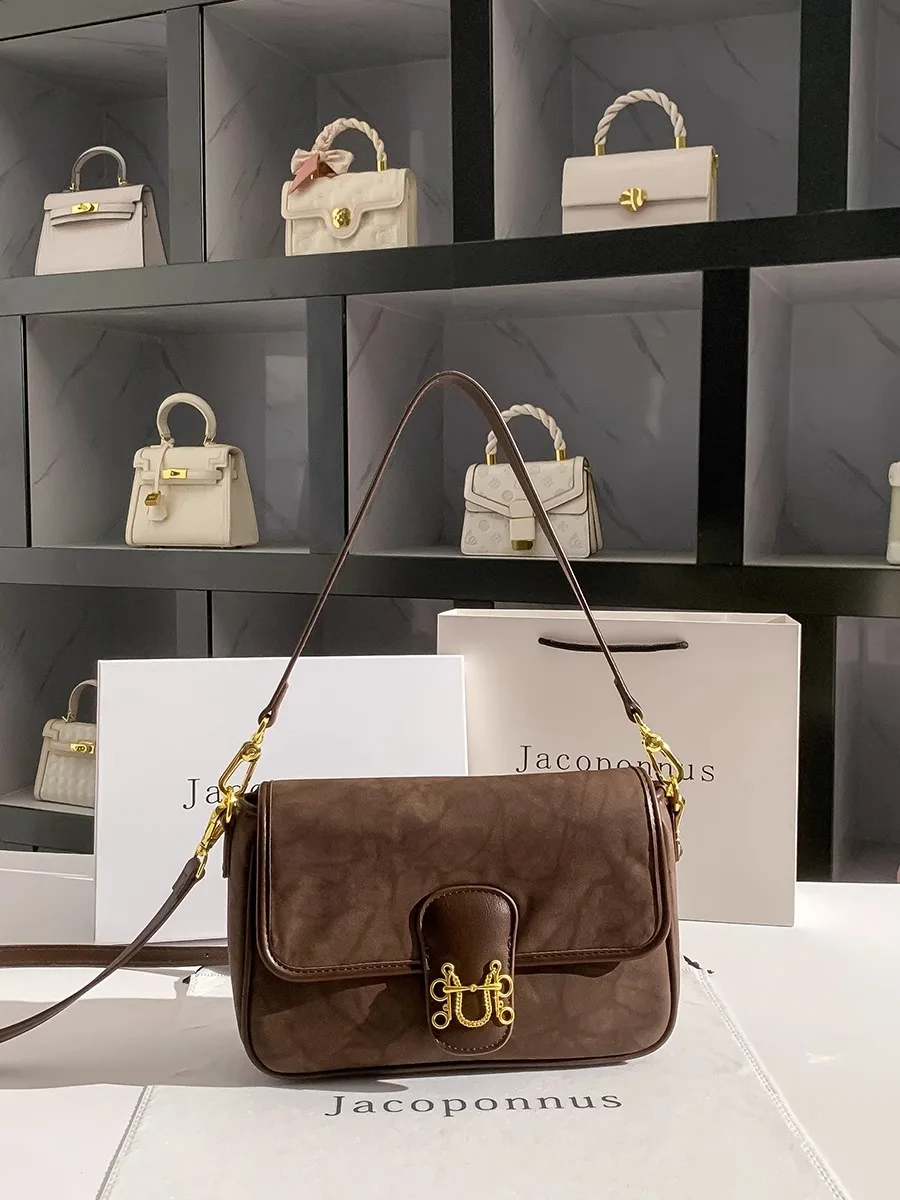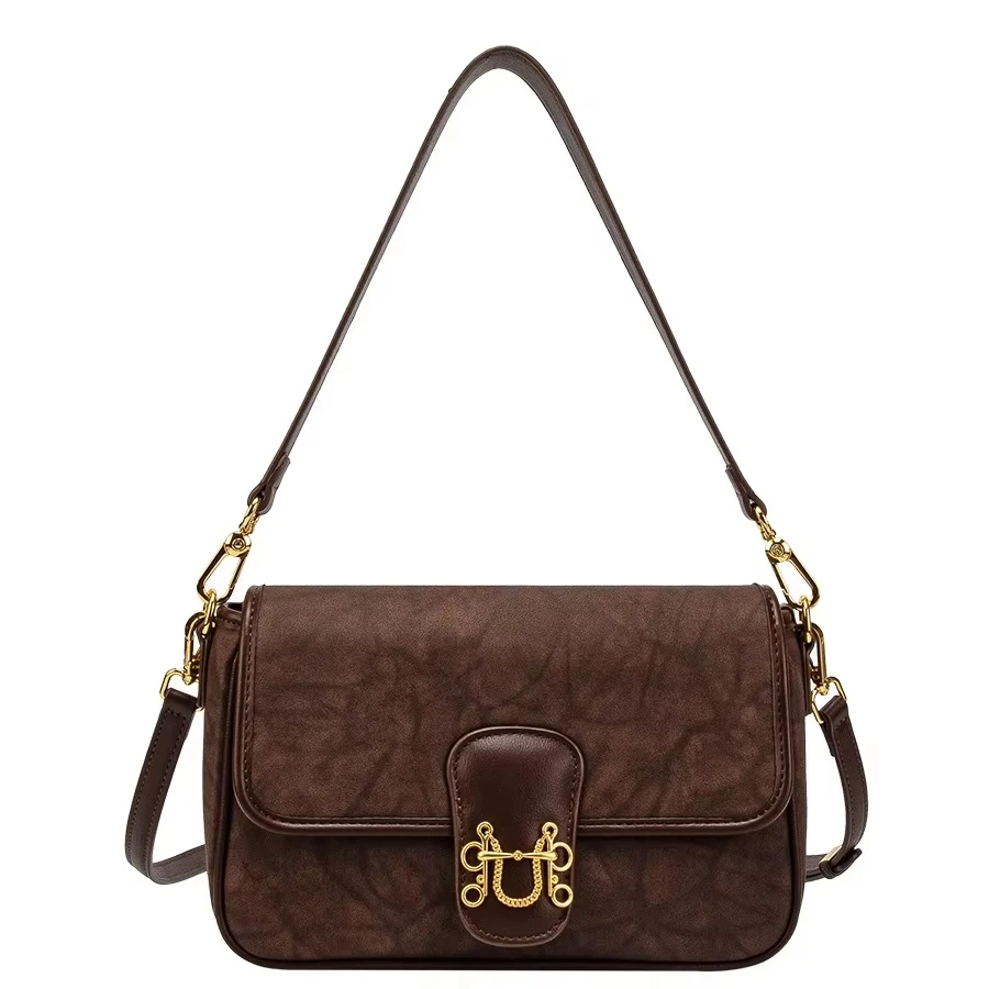2026 Guangzhou Factory Arrival Ladies Armpit Handbag Brown Suede Finish All Season Wear-Resistant Design New Latest PU Material