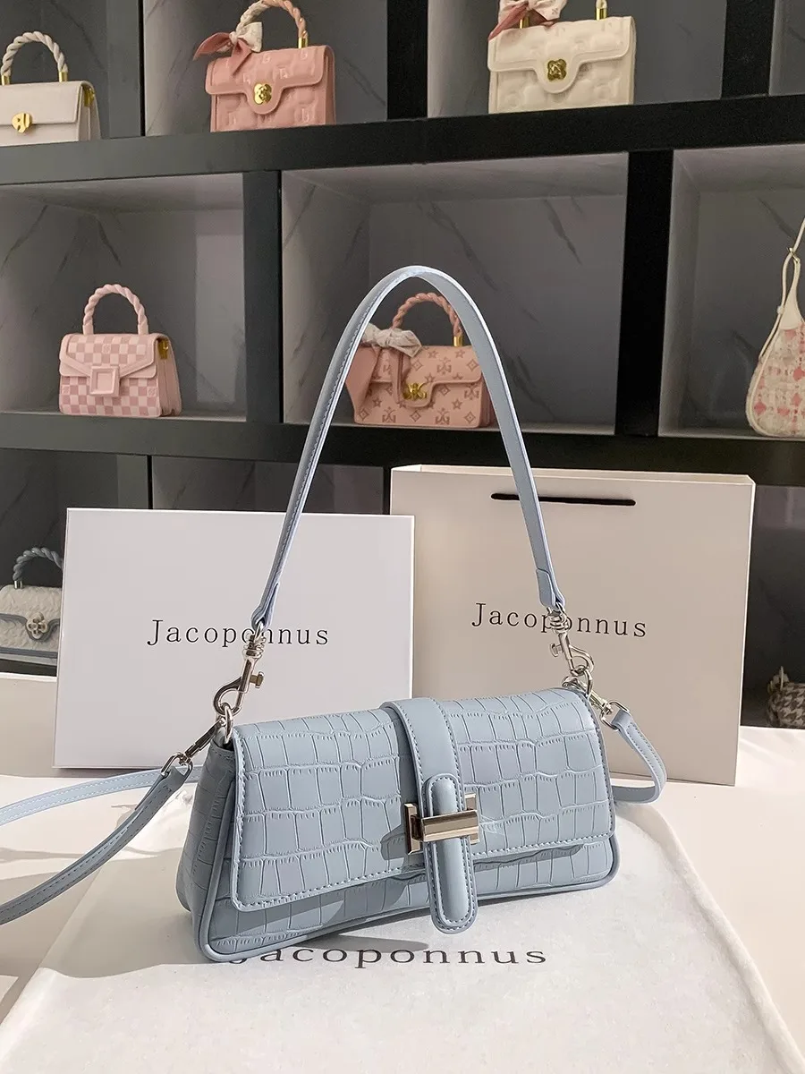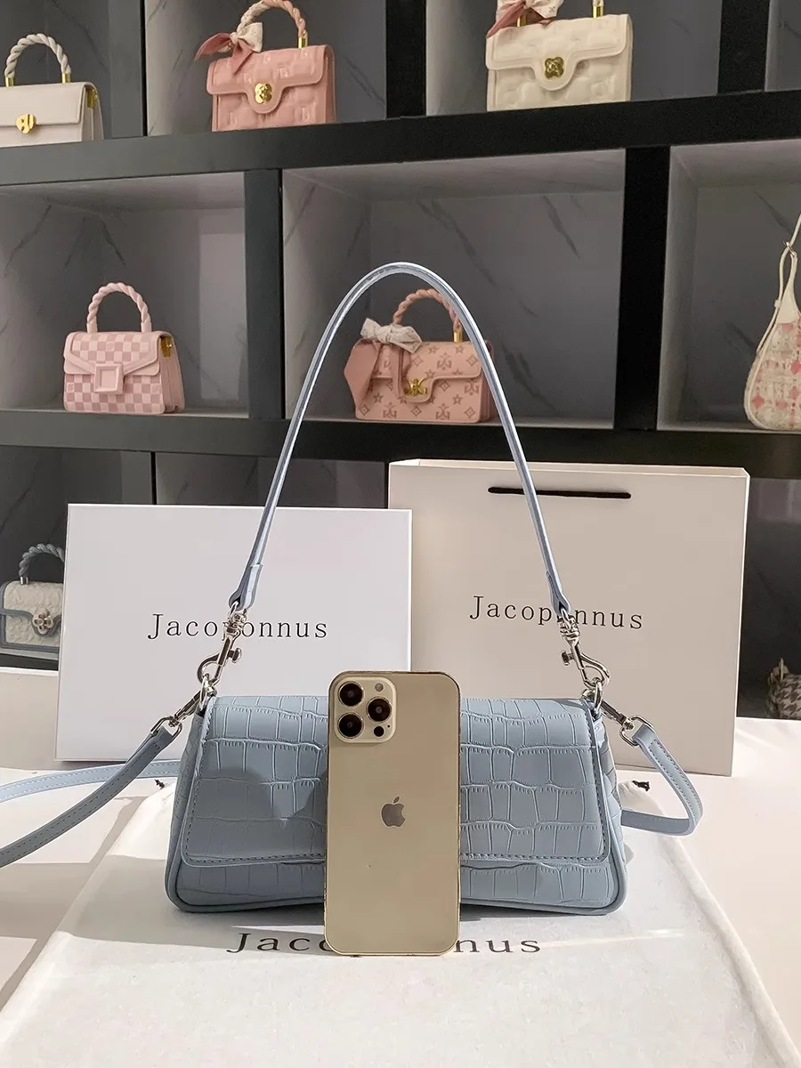 2026 New Arrival Designer Women's PU Leather Messenger Bags Blue Mini Handbags Fashionable Nouveau Design Ladies Winter Summer