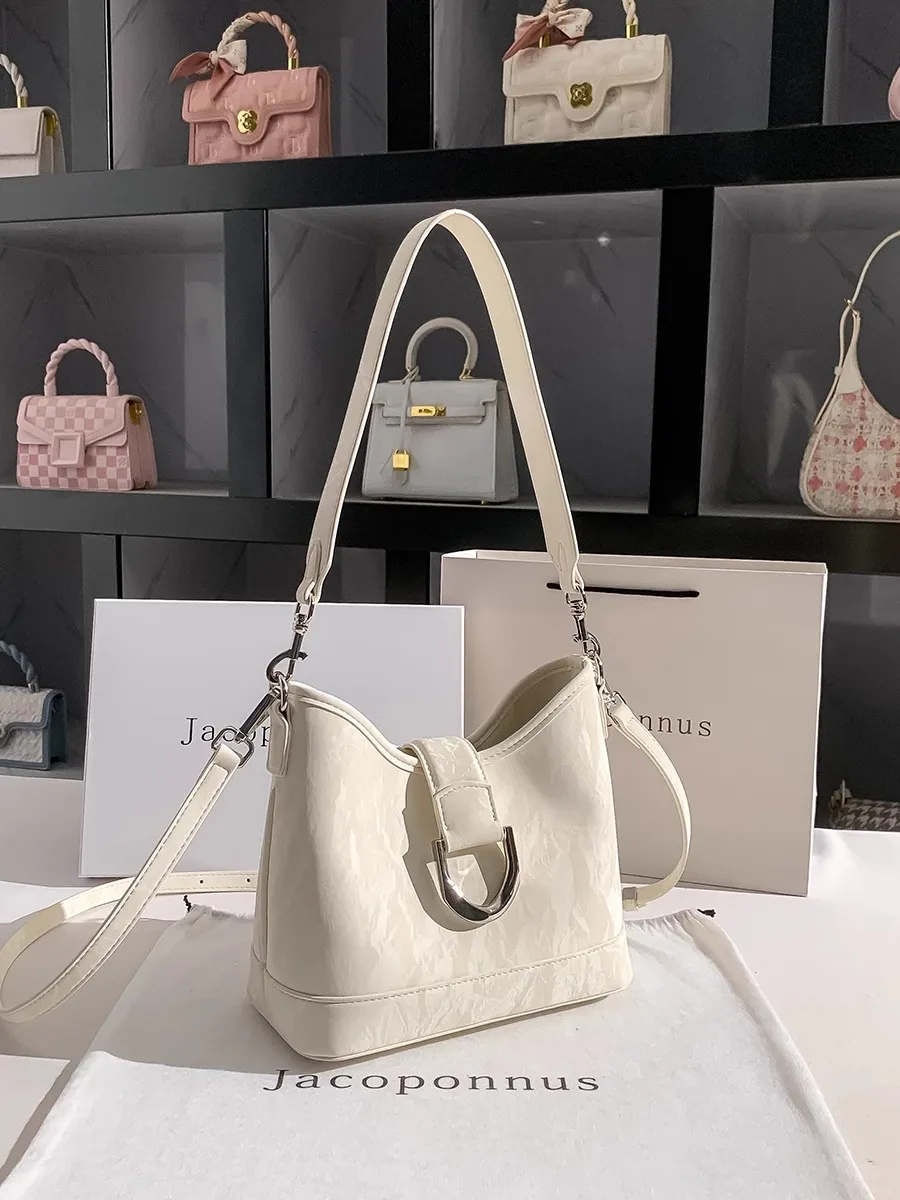 Designer Vintage Popular Ladies Women Crossbody Shoulder Hand Bags Fashion Casual Large Capacity Cowhide Leather Bucket Bag 2026