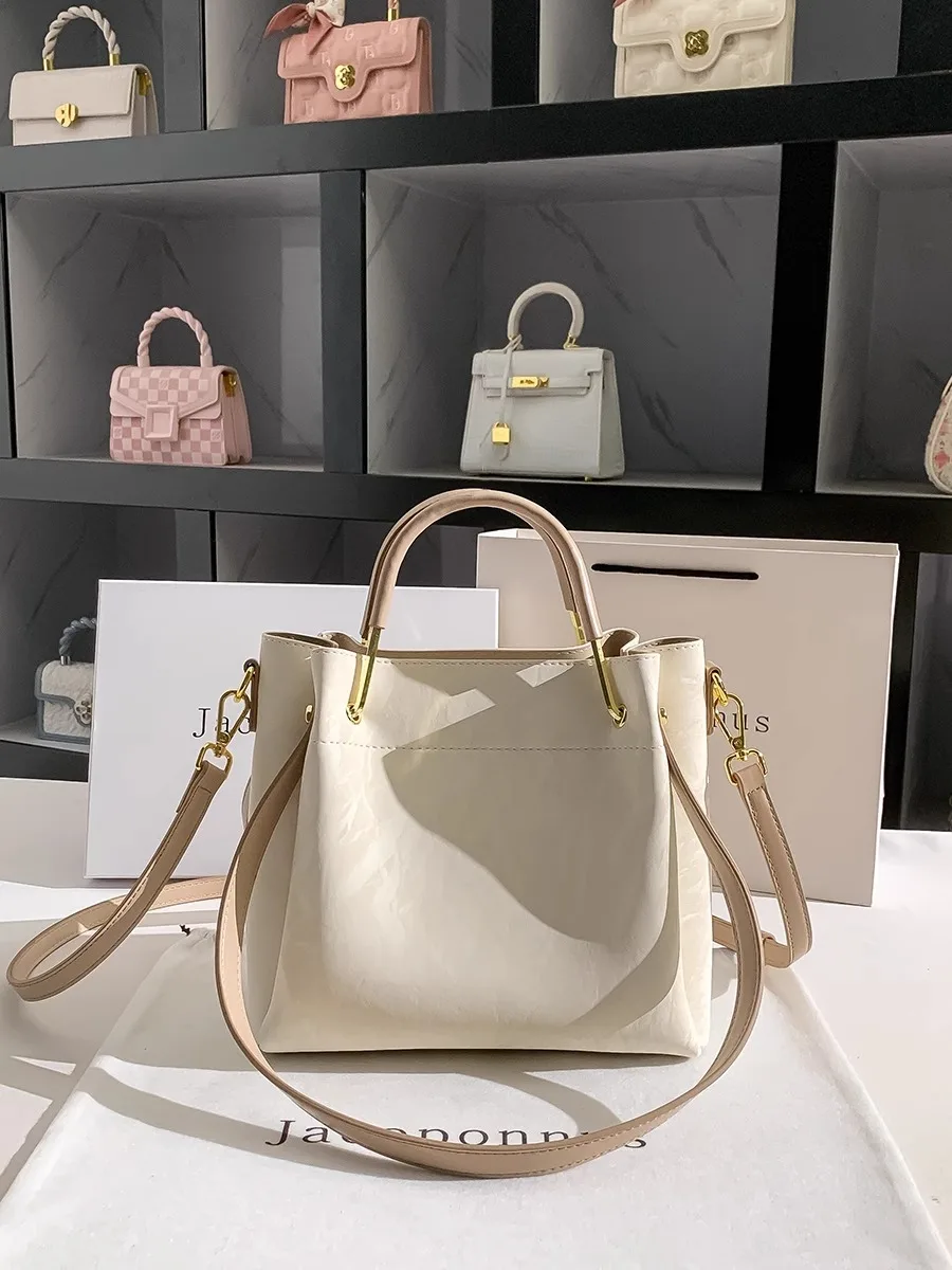 Designer Vintage Popular Ladies Women Crossbody Shoulder Hand Bags Fashion Casual Large Capacity Cowhide Leather Bucket Bag 2026