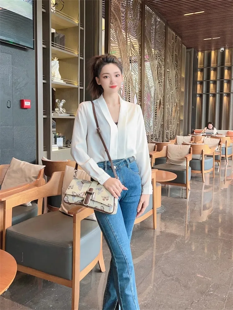 ZYHT 82024 White Blouse with Ruffled Cap Sleeves V-Neck Blouses Et Chemises Pour Femmes White Blouses for Women