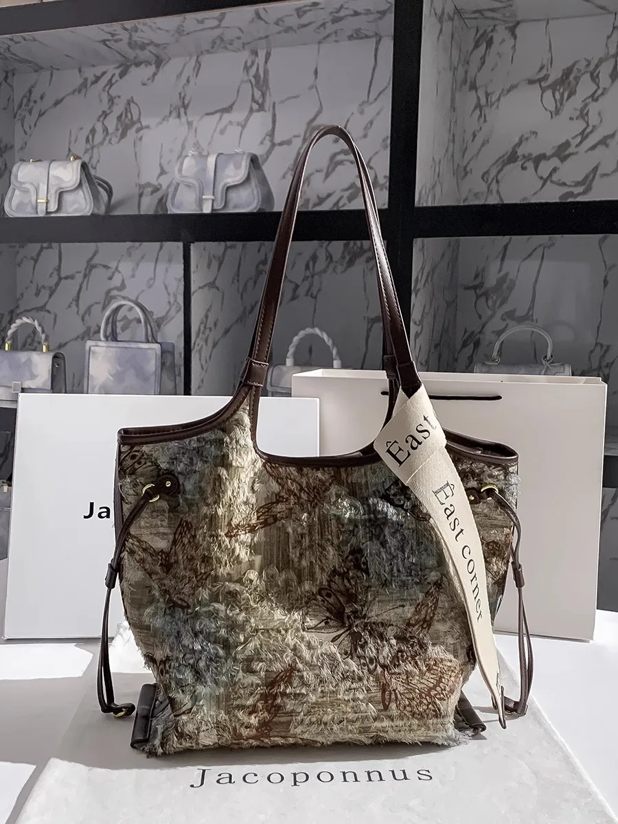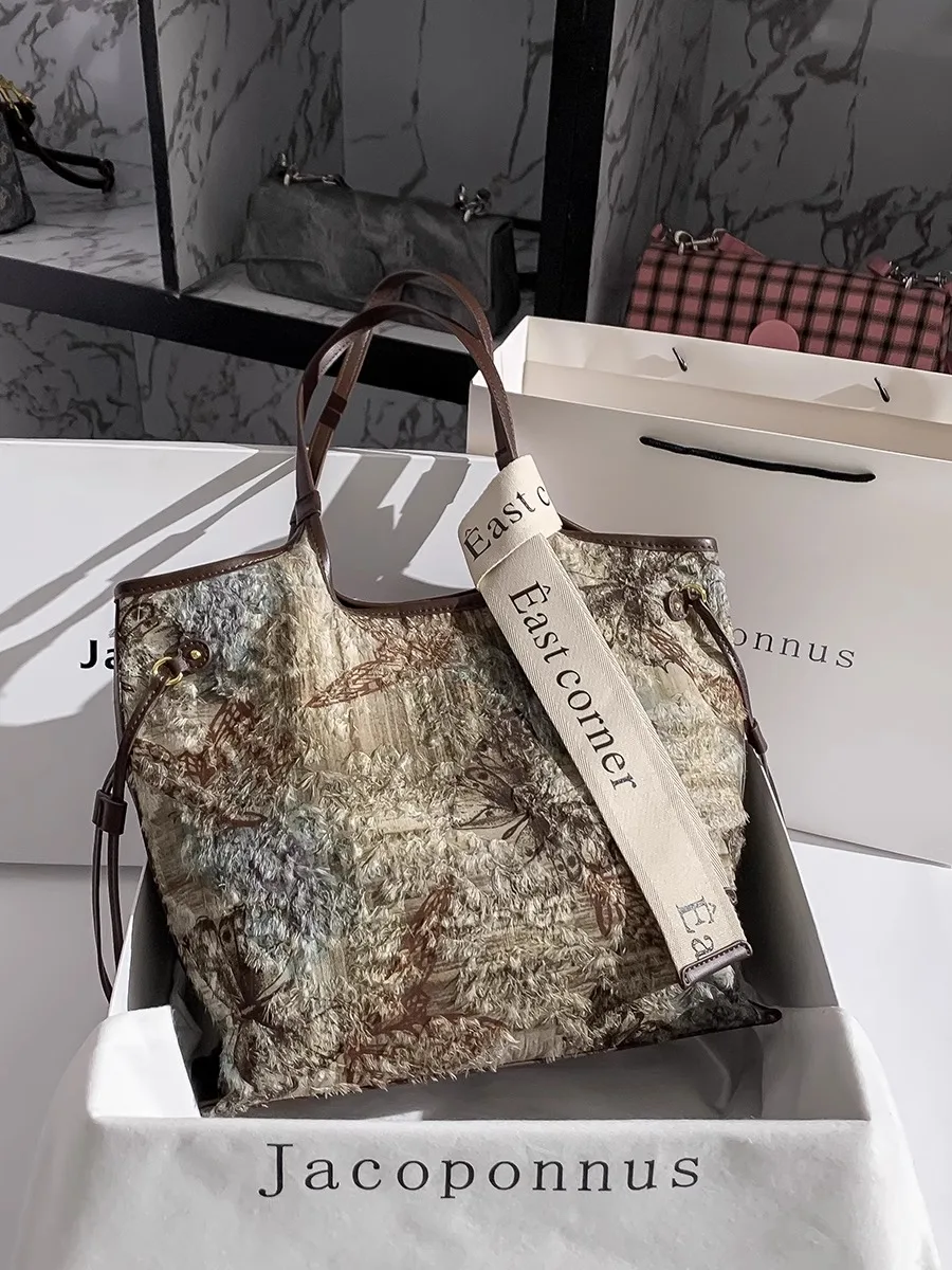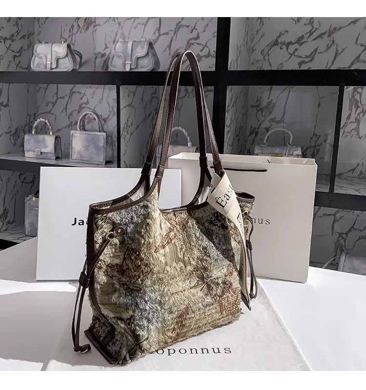 Women's Luxury Tote Purse High Quality PU Leather and Denim Large Capacity with Contrast Color Embroidery for Summer