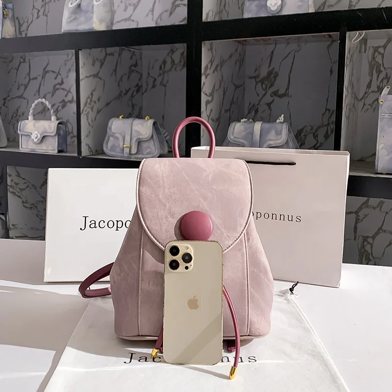 2023 Factory Wholesale New for Pink Denim Backpack for Female Students Customized Logo PU Material for School Outdoor Travel Sum