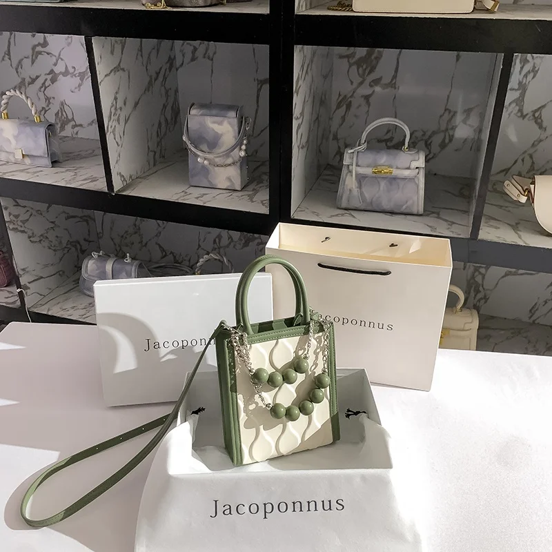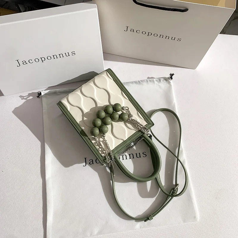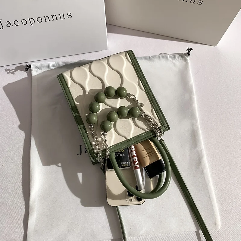 2026 New Designer PU Leather Small Bag Pearl Chain Diagonal Body Phone Bag Fashionable Summer Handbag for Girls Factory