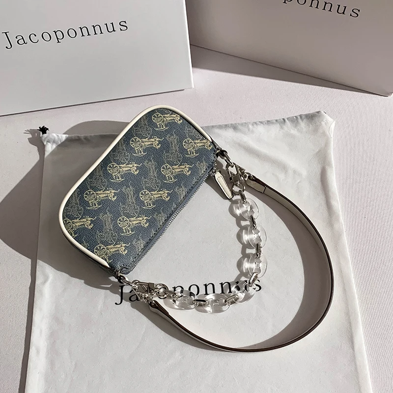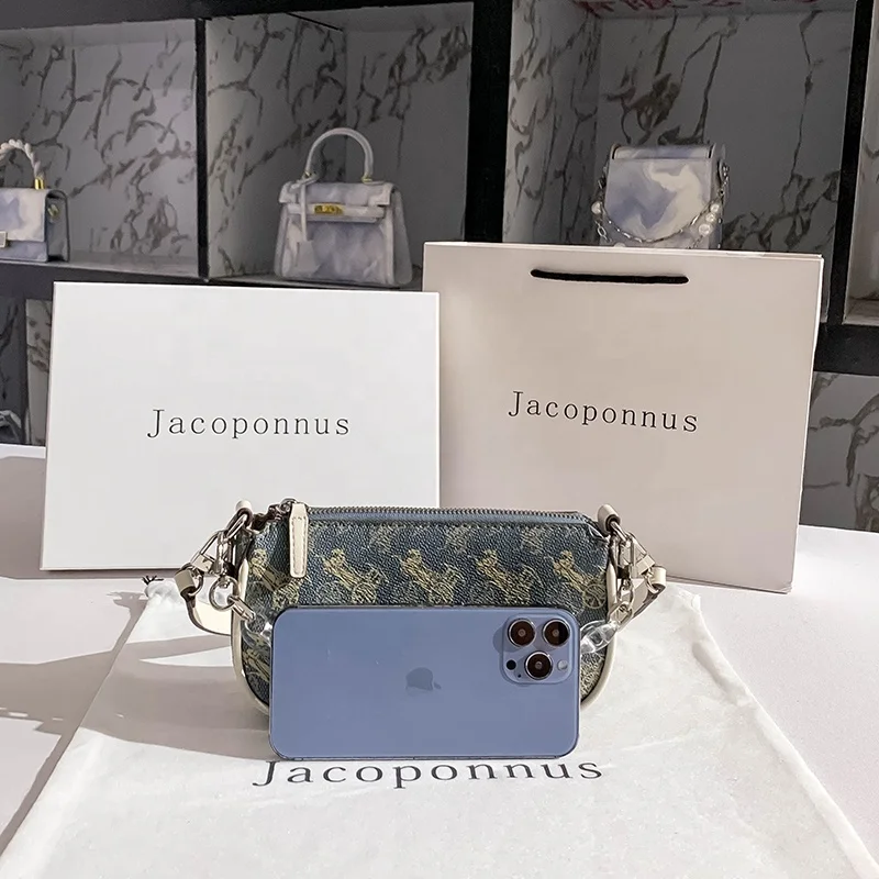 Factory Direct Private Brand Vintage Chain Pattern PU Leather Mini Purse Fanny Pack Shoulder Bag Zipper Letter for Summer