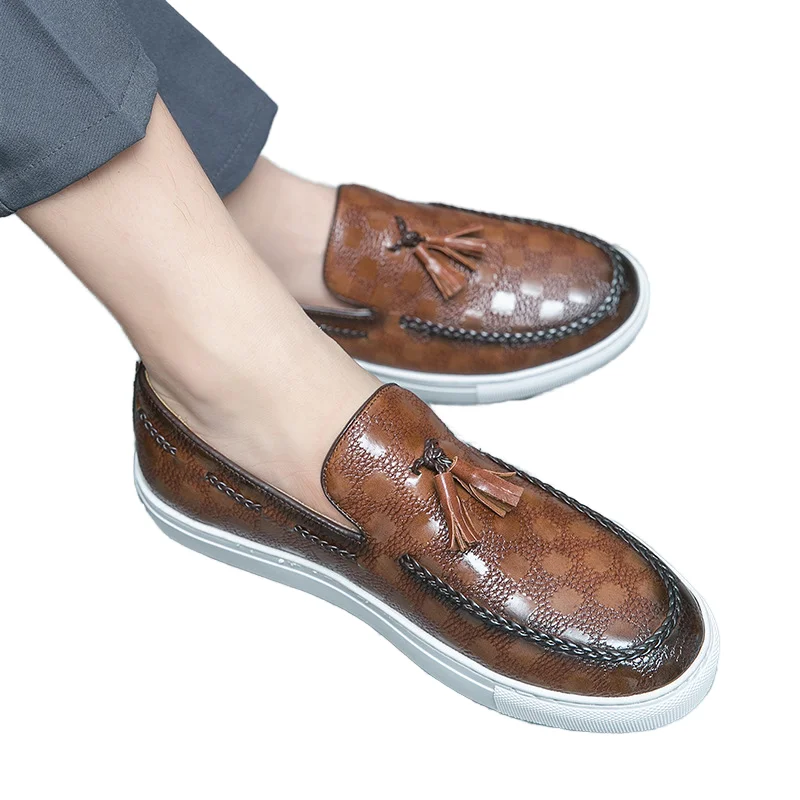Men's Wedding Loafers Check Pattern Tassel Slip-On Flat Shoes Groom Bestman Comfortable Breathable Light Weight Spring Winter