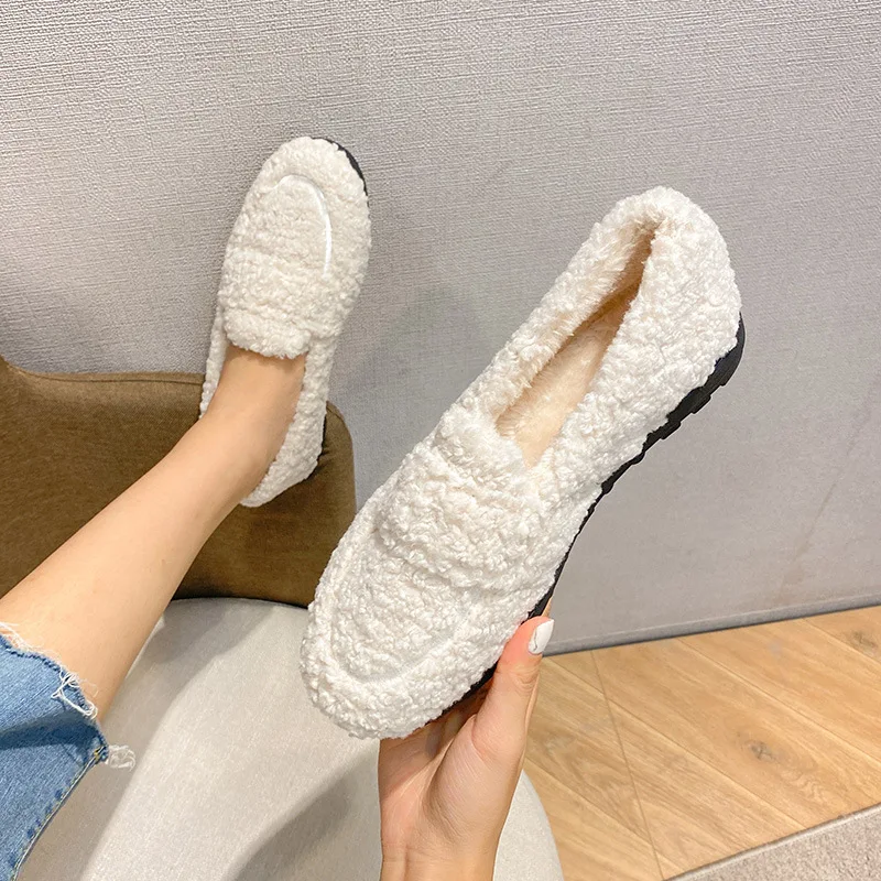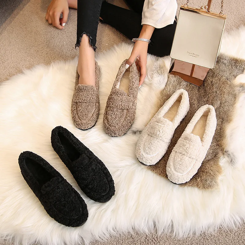 2026 Autumn/Winter Lefu Flat Shoes Velvet Solid Color Thick Bottom Breathable First Source Brown-Factory Wholesale