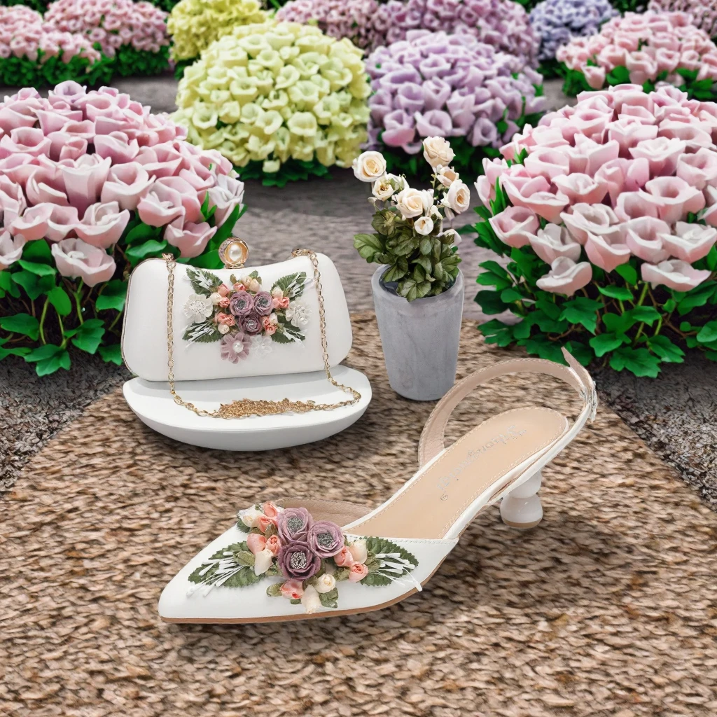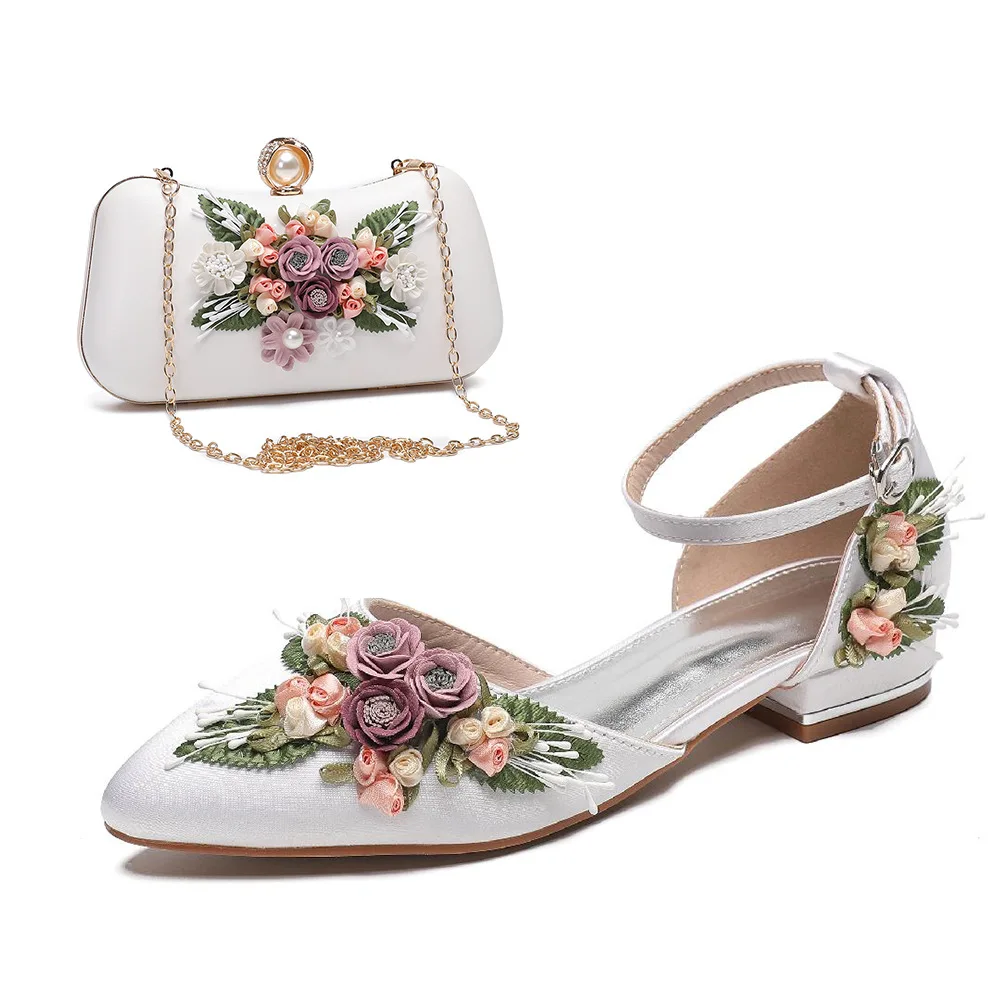 Ladies' White Wedding Shoes Peep Toe PVC Breathable Comfortable Different Height Heels Set Rose Pearl Handbags Evening Purse
