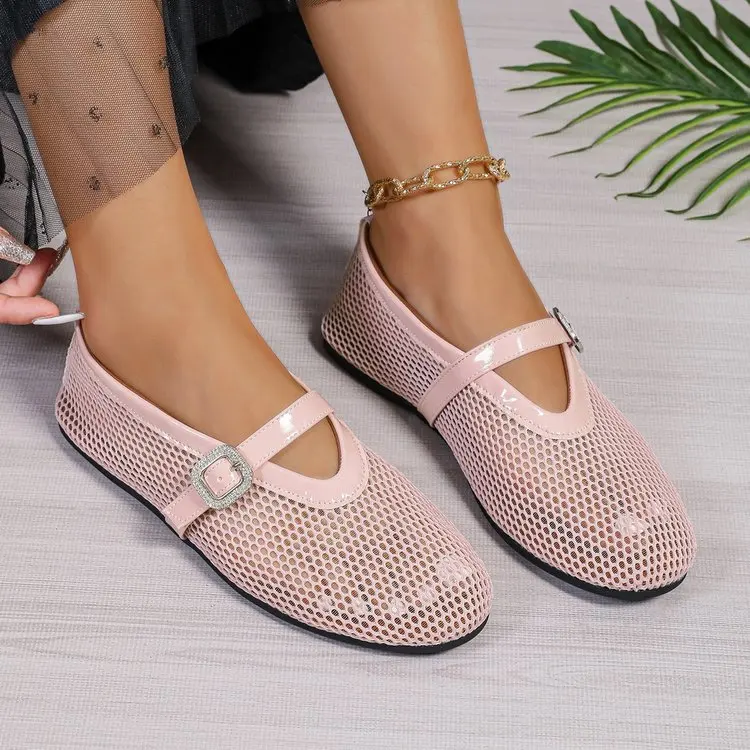 Summer Plus Size Hollowed Out Mesh Sandals Summer New Round Toe Fishing Mesh Flat Sandals Women's Flat Bottomed Sandals