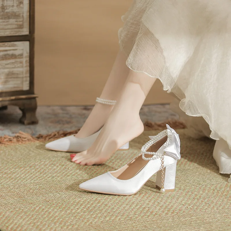 Women's Formal High Heel Pumps 6cm 8cm Wedding Bride Sandals Closed Toe Plus Size Shoes for Party Rubber Insole for All Seasons