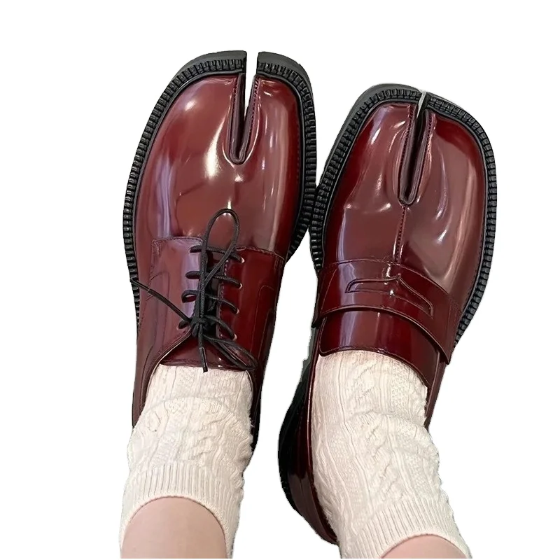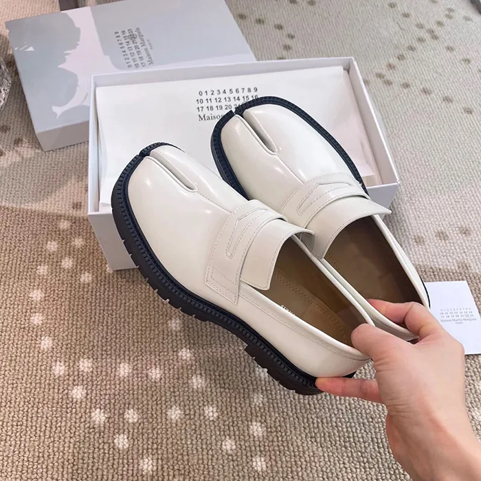 Xinzirain Custom Unisex Flat Shoes Size 35-44 Split Toe Genuine Leather Anti-slippery Rubber Sole Women Men Lazy Tabi Loafers