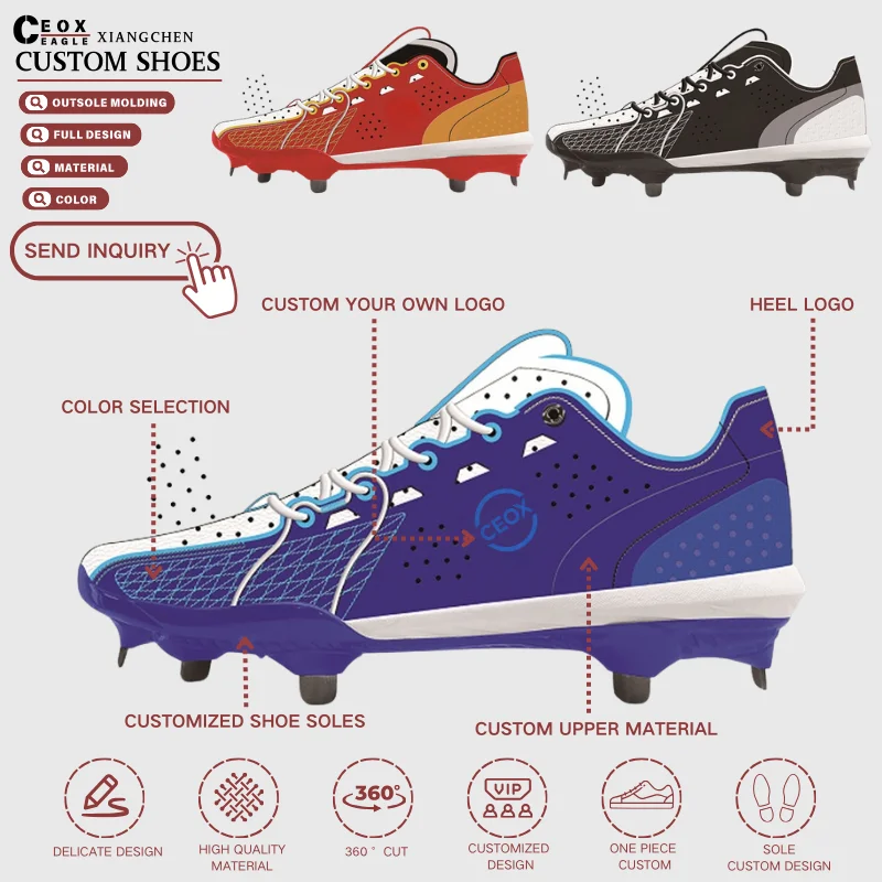 China Manufactures Custom Men's Baseball Sports Shoes High Quality Custom Molded Luxury Metal Softball Baseball Cleats for Men