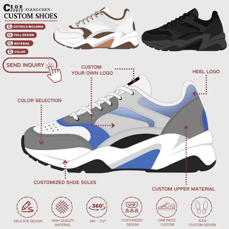 Custom Logo CEOX XC-DIDZ5 Running Sports Chunky Lace-up Genuine Leather & Mesh Sneakers for Men's Women's Fashion Trend