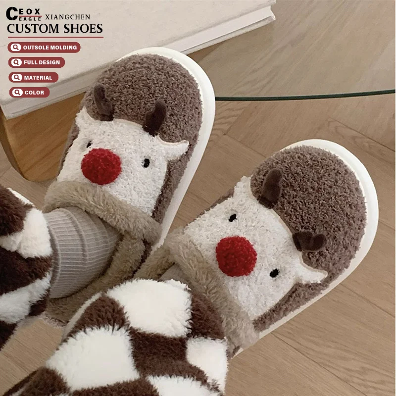 2026 Hot Selling Cute Christmas Moose Cinnamoroll Fur for Slippers for Ladies Comfortable House for Slippers for Winter Autumn