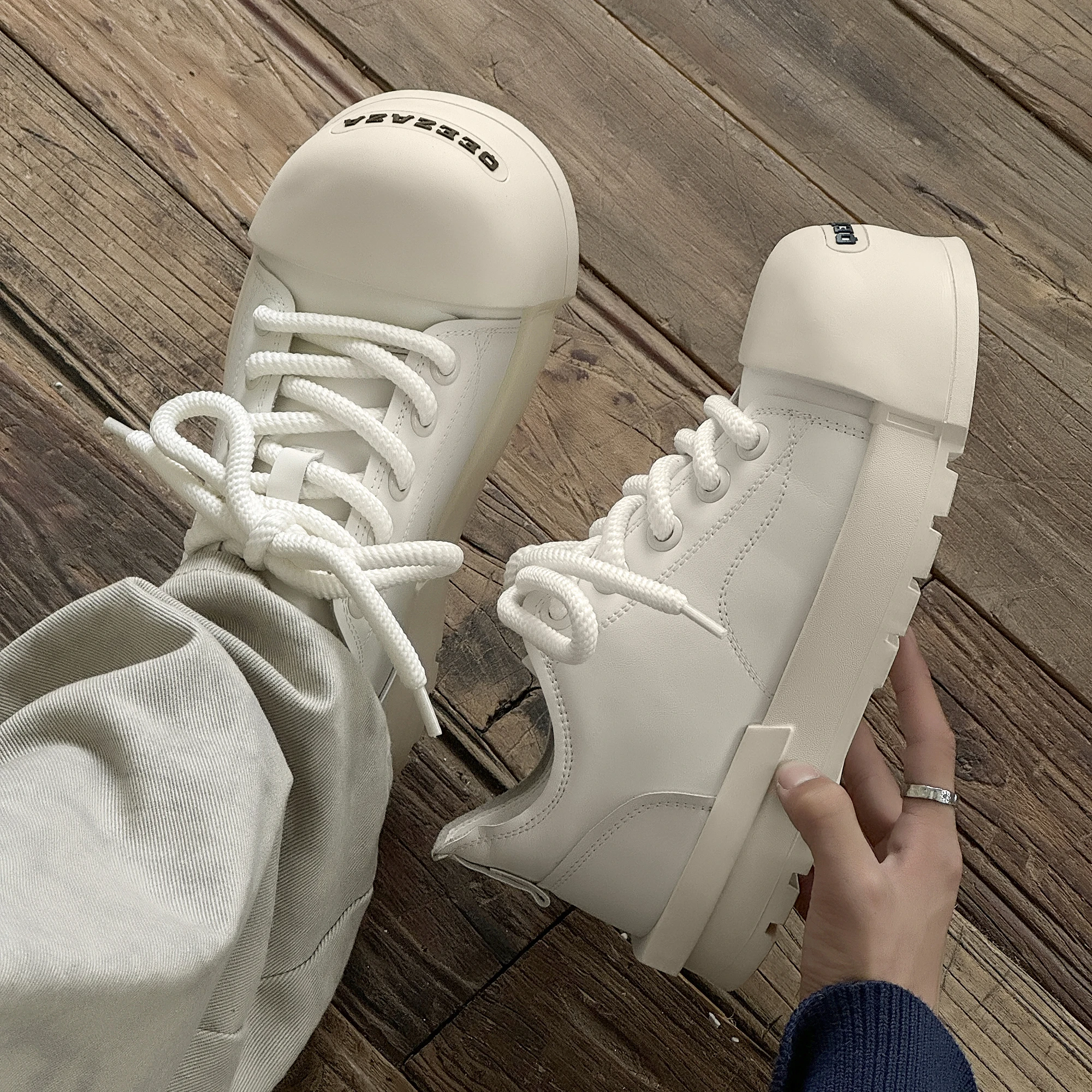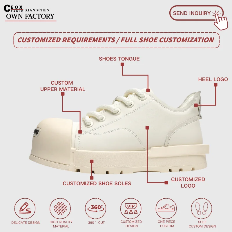 Men's Women's CEOX Retro Casual Black White Skateboarding Shoes Thick Sole Height Increase Genuine Leather Spring/Winter Walking