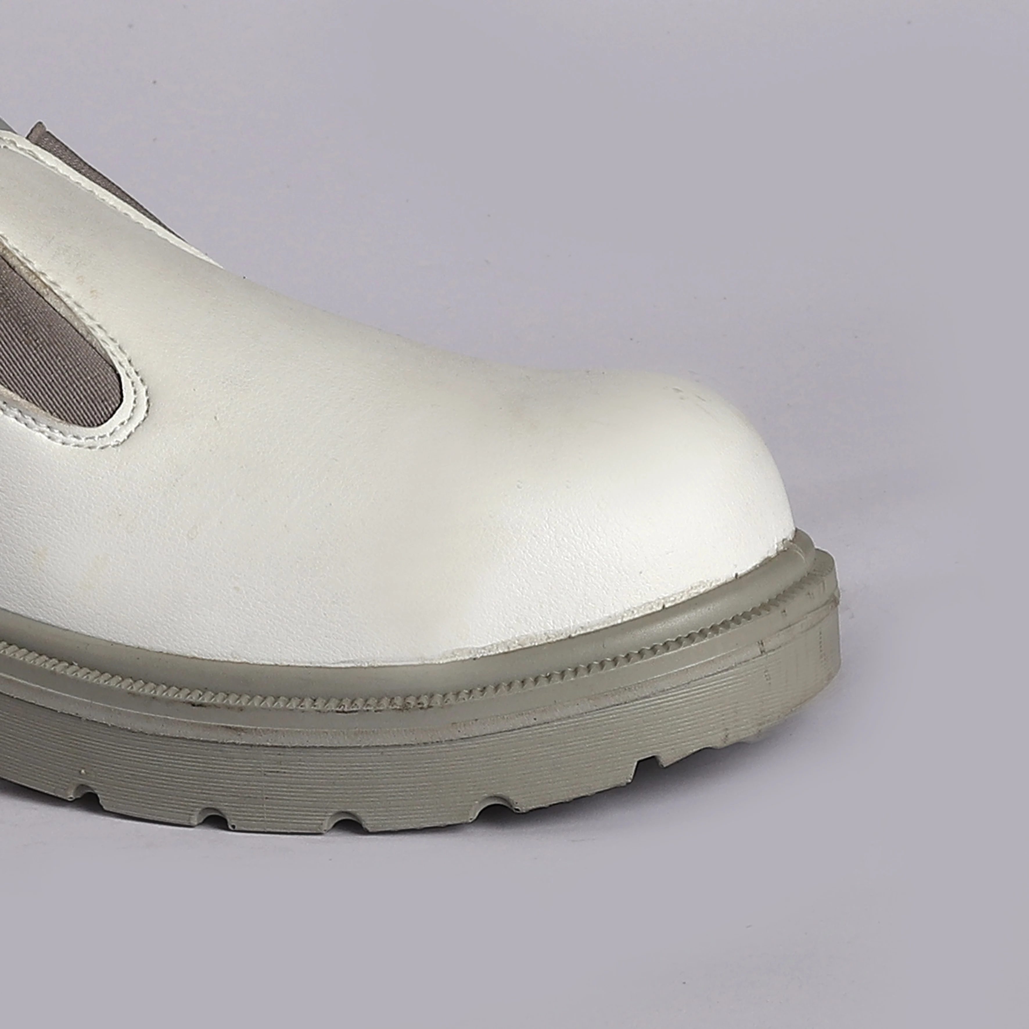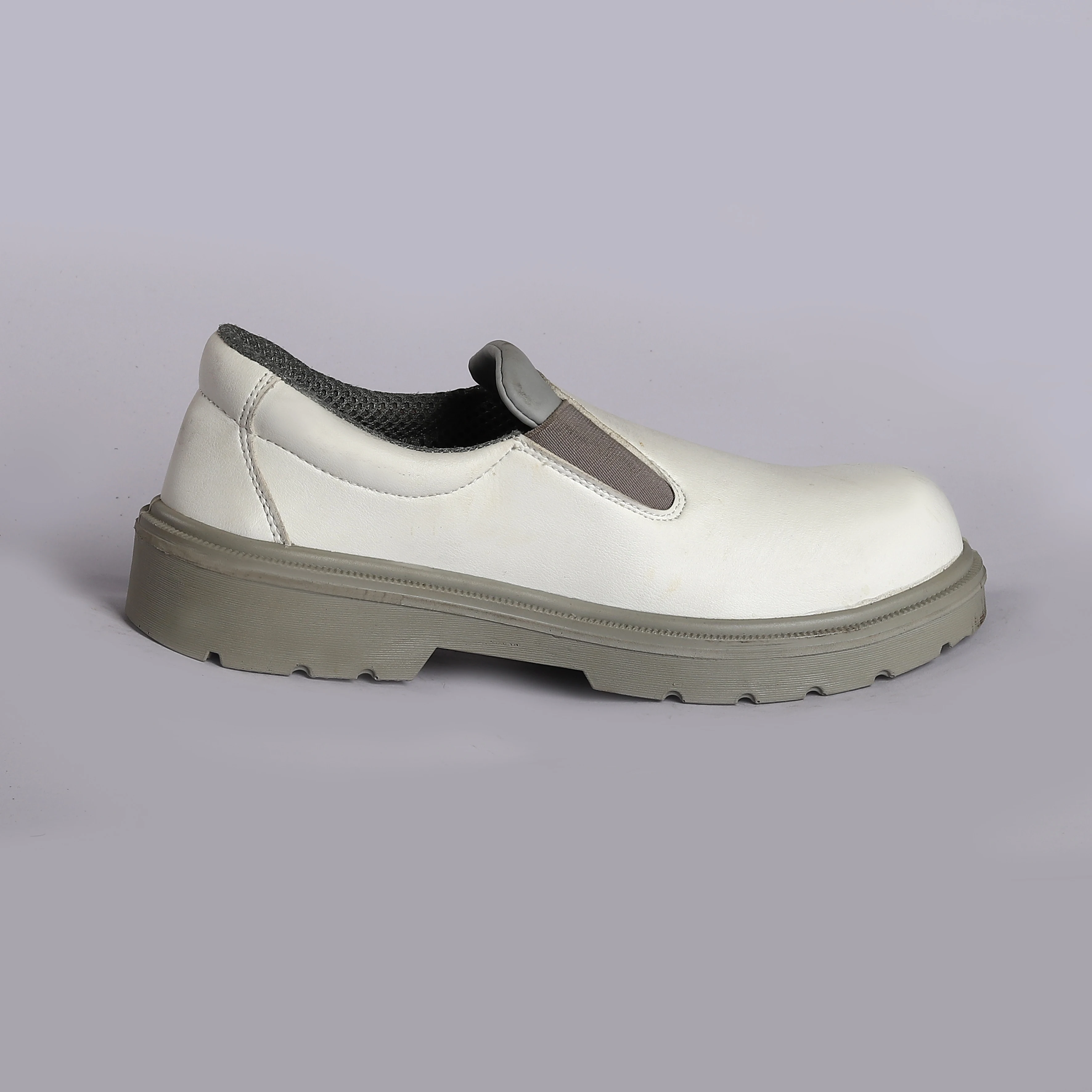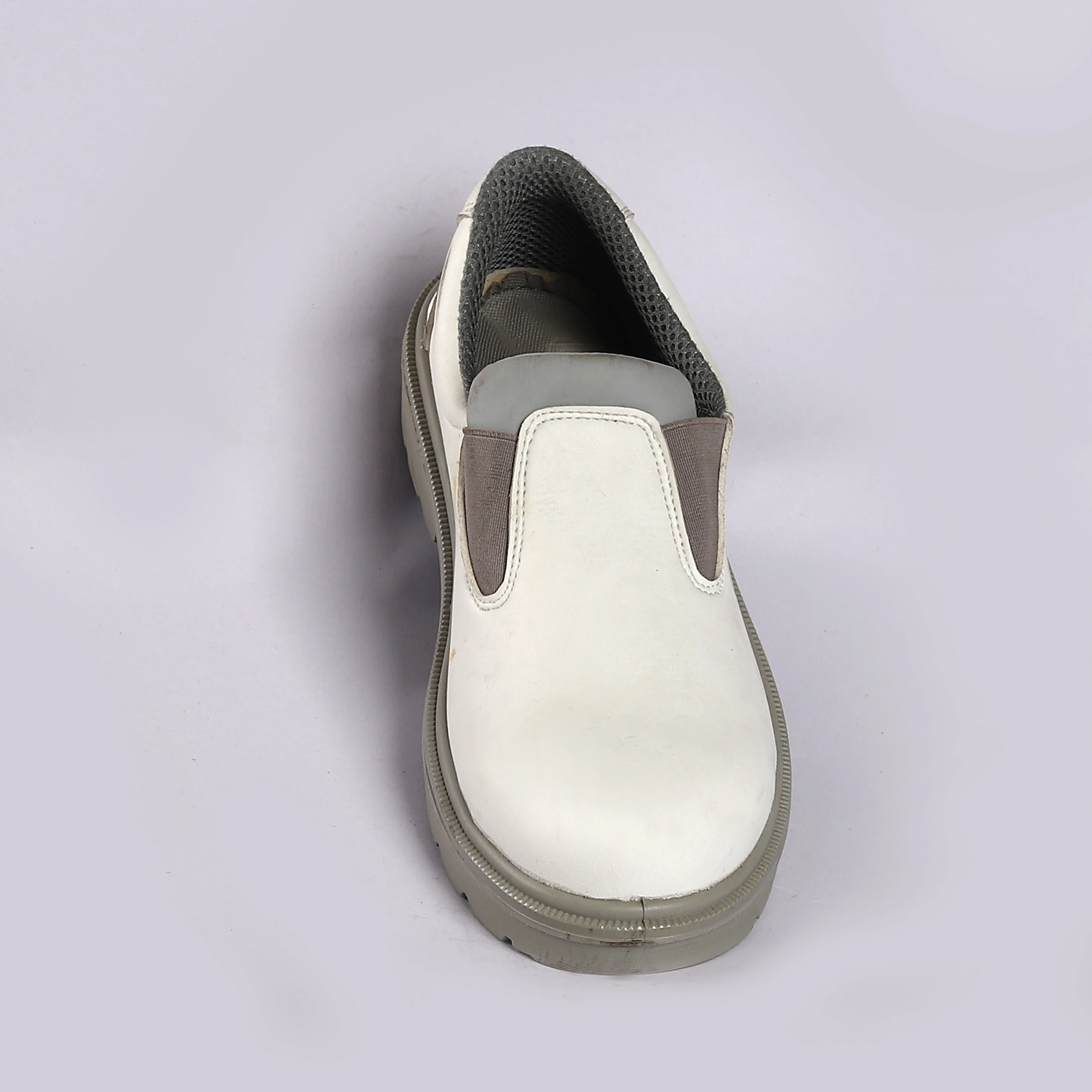 Unisex White Low Top Cow Leather Slip-on Safety Shoe Steel Toe Anti Smash Anti-Puncture Security Shoe for Indoor Outdoor Kitchen