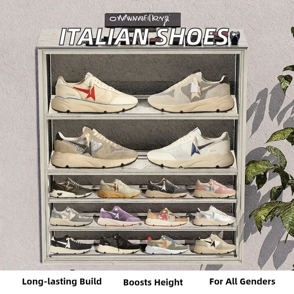 Italian Designer Brand Shoes for Men Women Classic Leather Suede Sequin Dirty Lace-Up Closure Height Increasing Leopard Print
