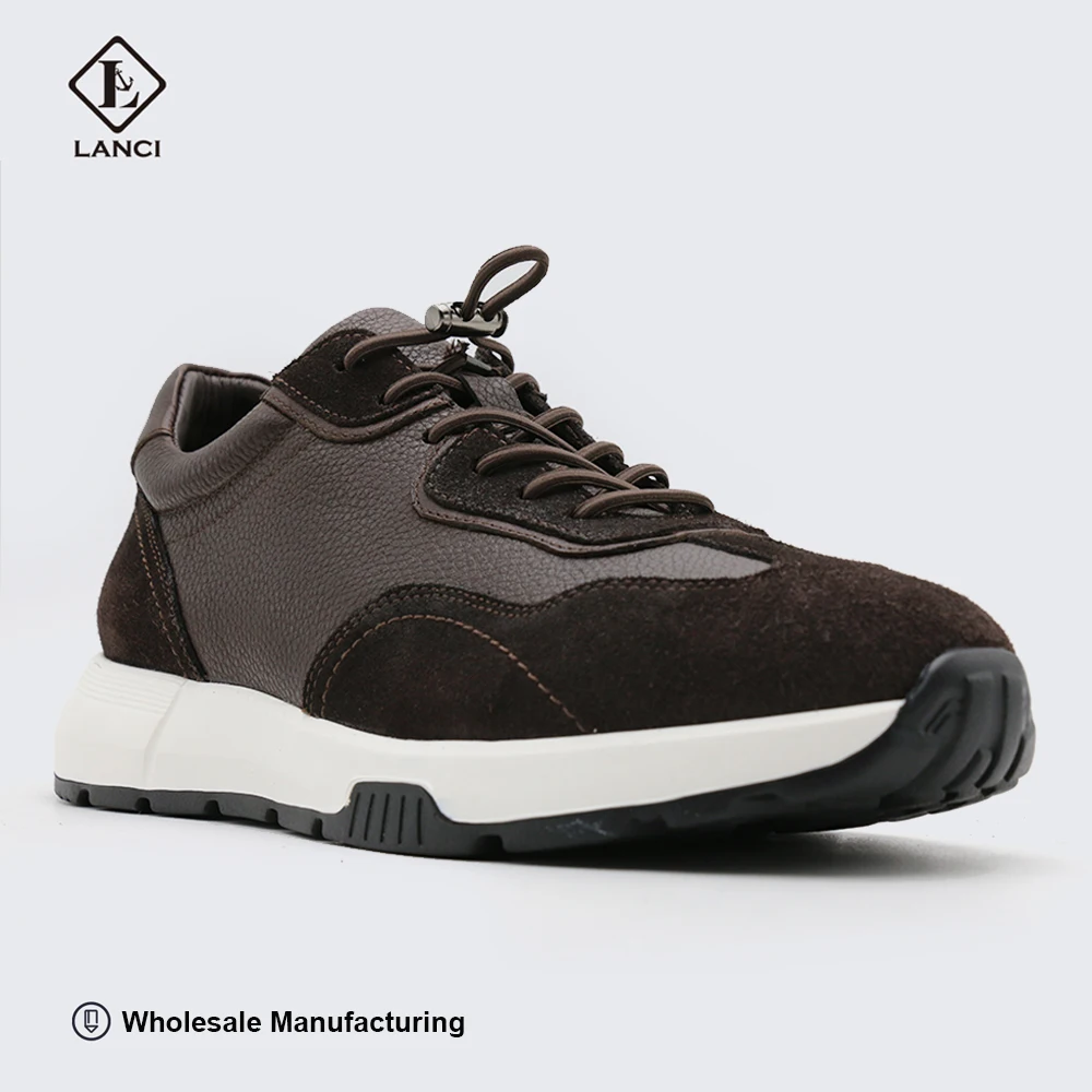 Cowhide Leather Casual Shoes Custom Manufacturer's Retro Western Style Lace-Up Closure Genuine Leather Sneakers for Men