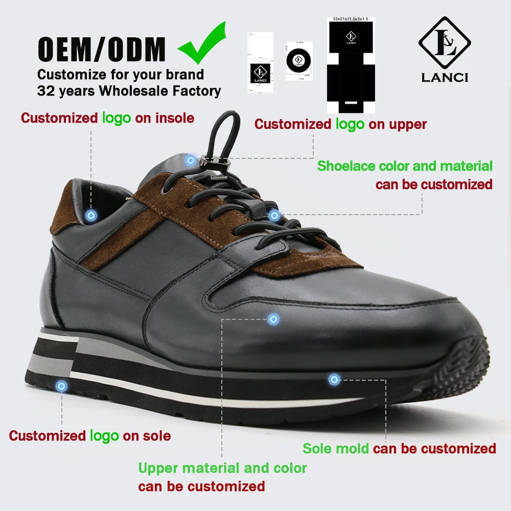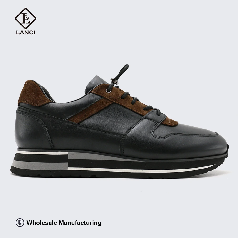 LANCI Sport Shoes Manufacturers in China Sneakers for Men Walking Shoe Leather Shoes Calfskin
