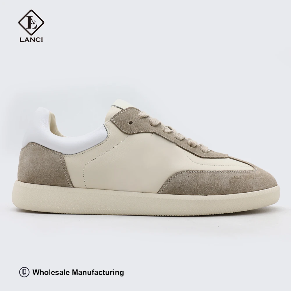 LANCI Casual Sport OEM Leather Skateboard Shoes for Men 2026 Fashion Designs With Cow Suede Custom Men's Running Sneakers