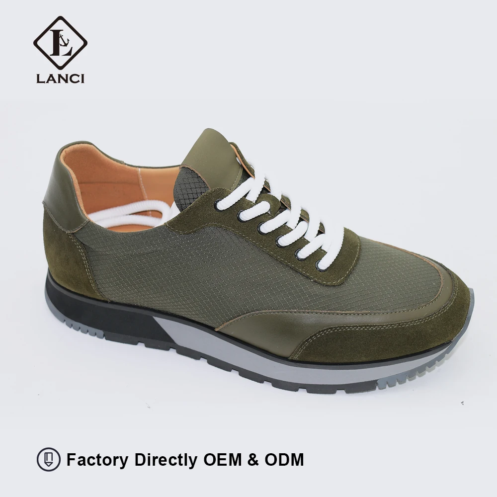 LANCI Custom Shoe Manufacturer Lace up Sneakers for Men Jumpy Sneakers Genuine Green Men's Sports Shoe Runner Sneakers