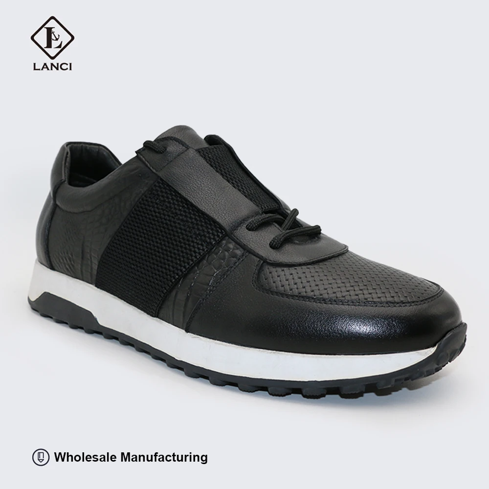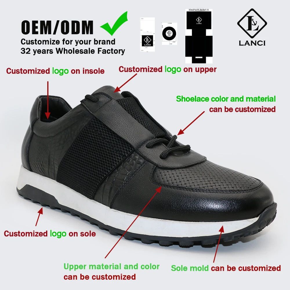 LANCI 2026 Wholesale Shoe Manufacturers in China Luxury Black Antislip Sneakers for Men High Quality Leather Shoes for Men