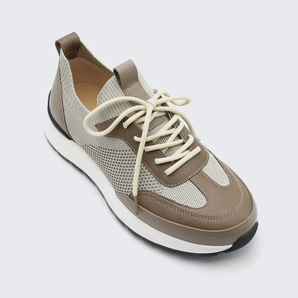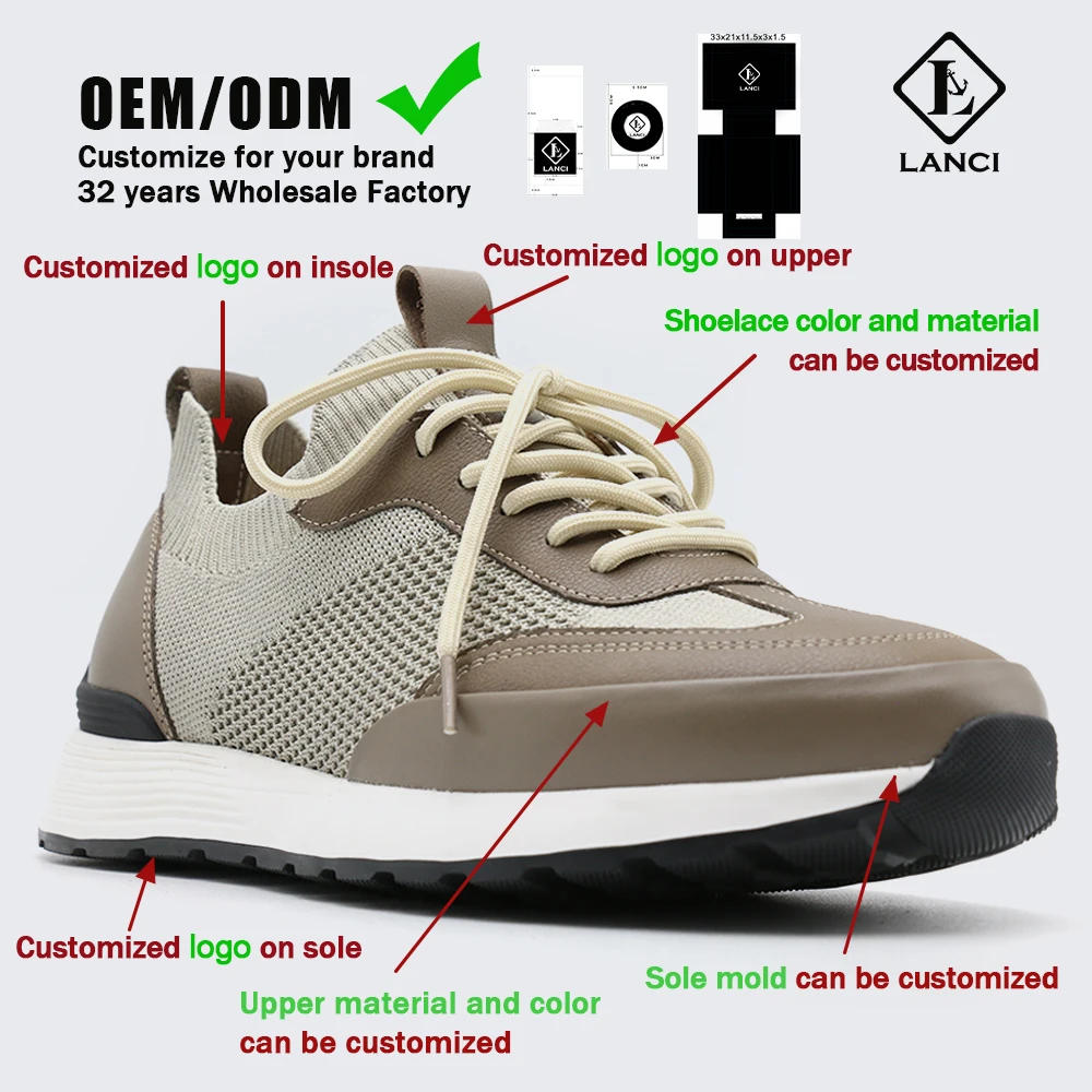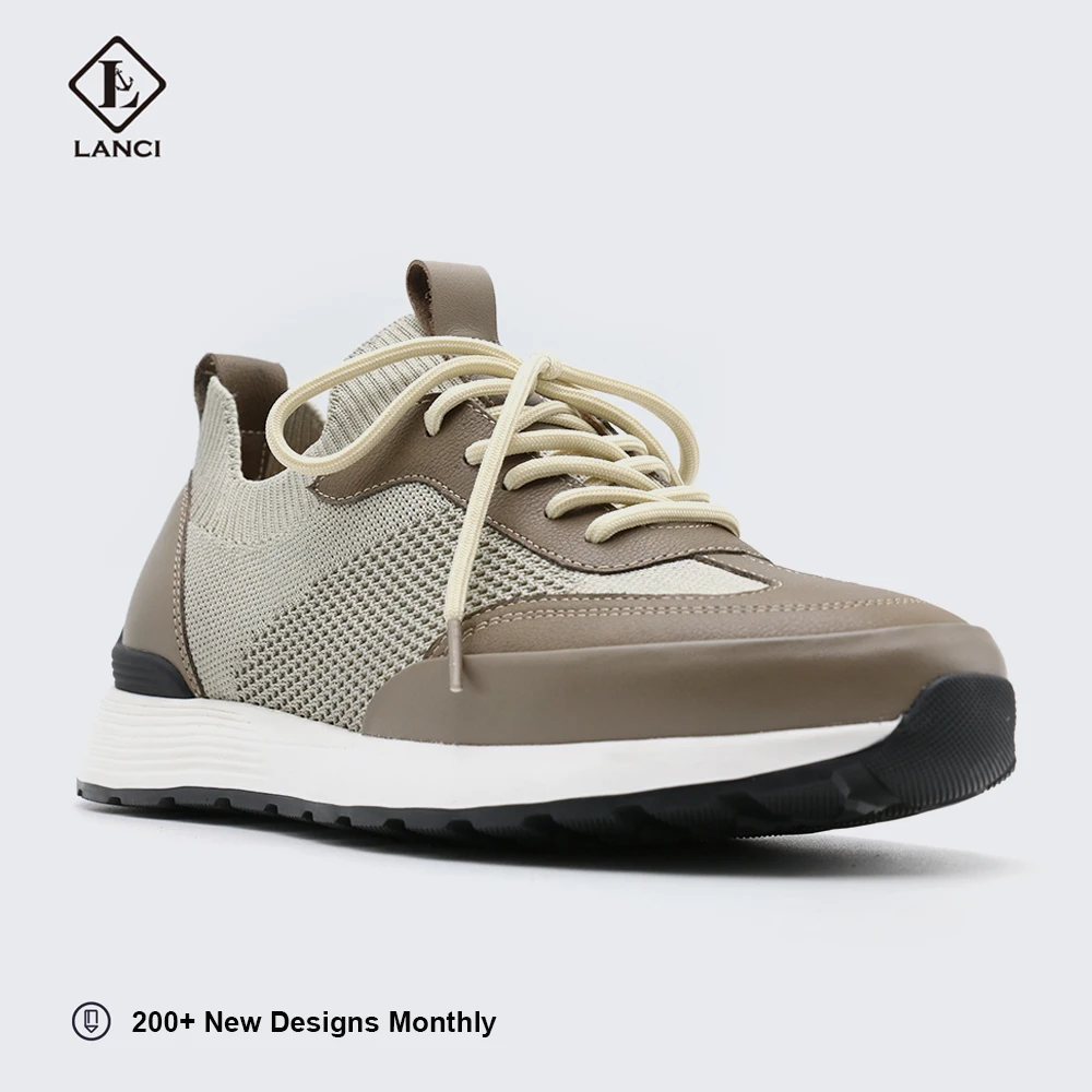 LANCI OEM Fly-woven Sneakers Comfortable Breathable Genuine Leather with Lace-Up Closure Anti-Slip Feature Customizable Sneakers