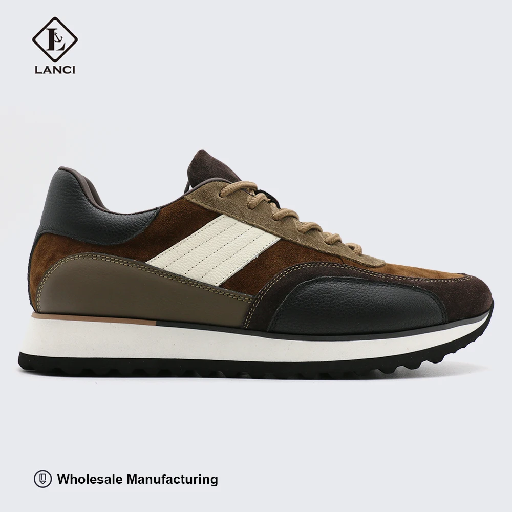 LANCI Stylish Sneaker Genuine Leather Upper Breathable Suede Retro Round Toe Shoes Lace-Up Closure Customizable Sneakers