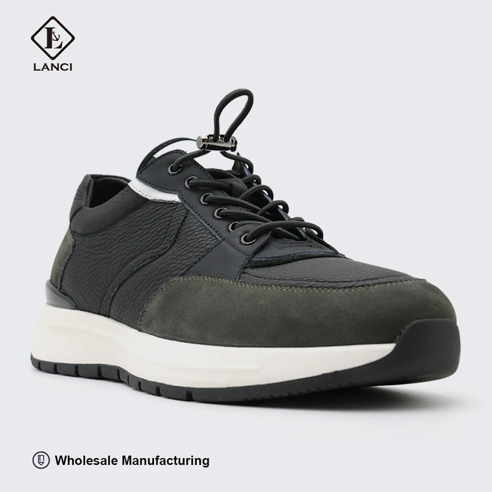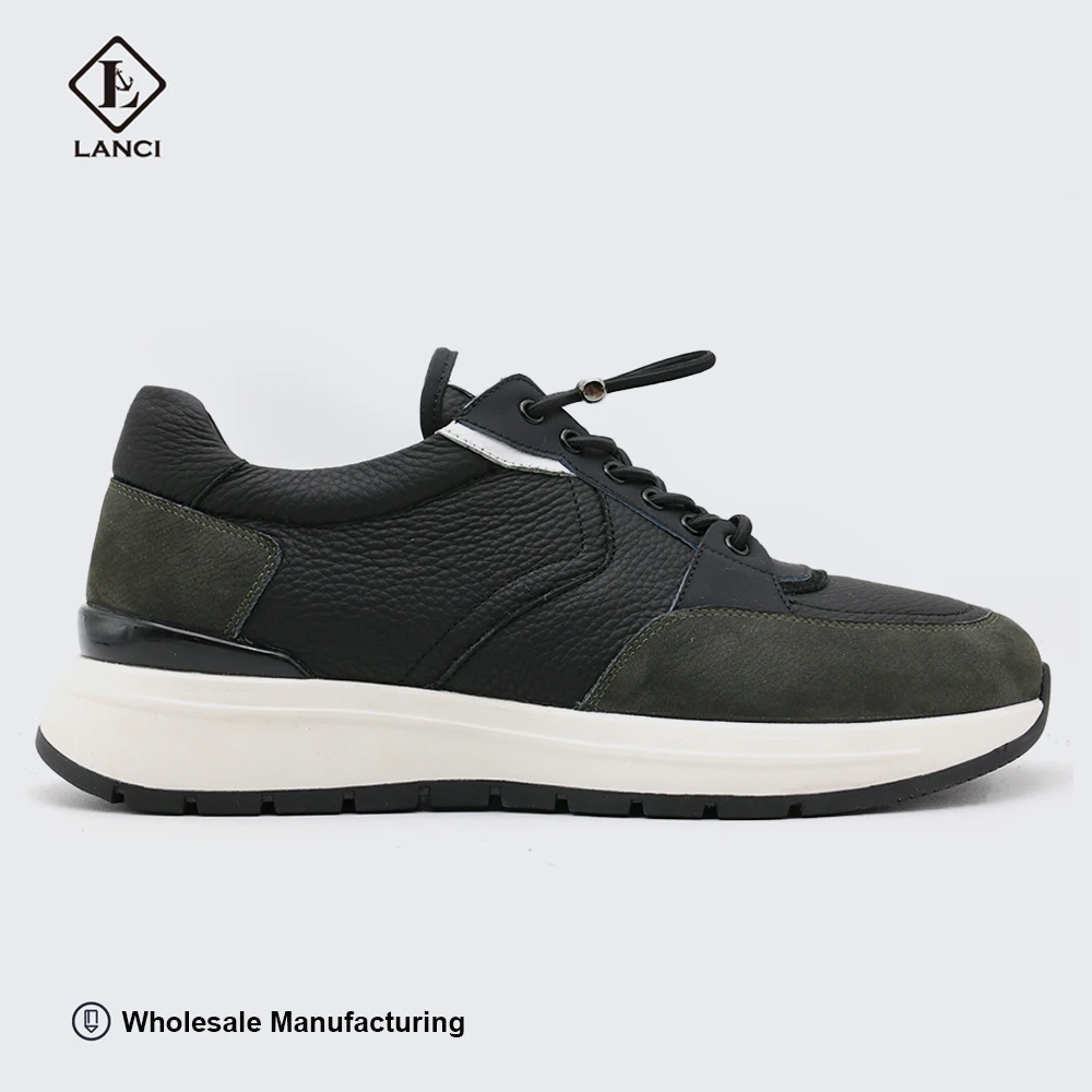 LANCI Casual Stylish Sneaker Running Genuine Leather Upper Breathable Suede Retro Walking Shoes Lace-Up Closure Shoes Running