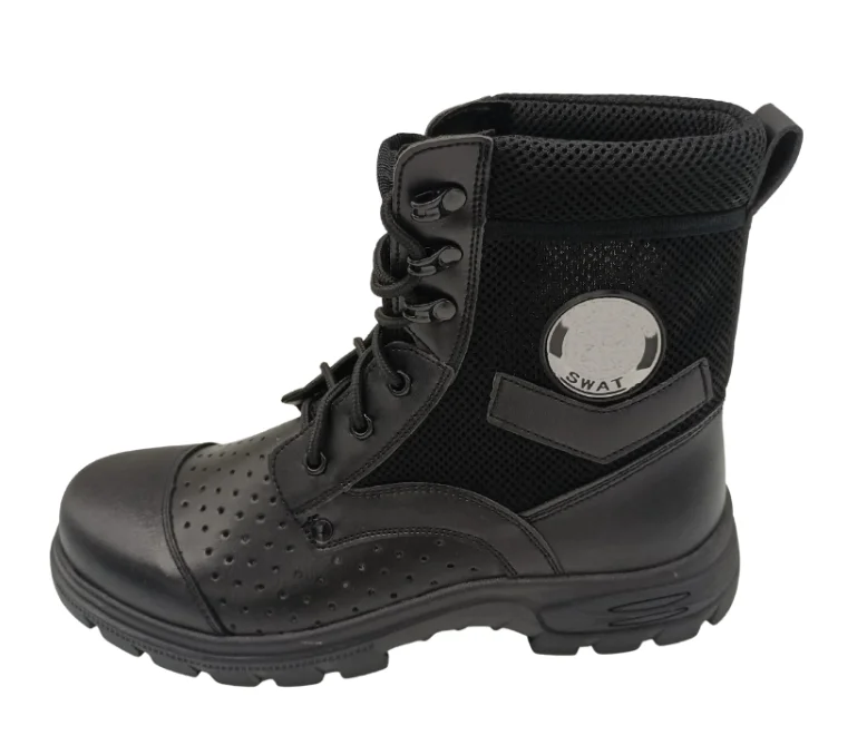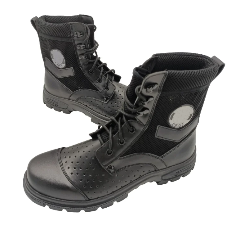 JDS Breathable Mesh Black Genuine Leather Hiking Boots Anti-Slippery & Anti-Oil Safety Shoes for Hiking