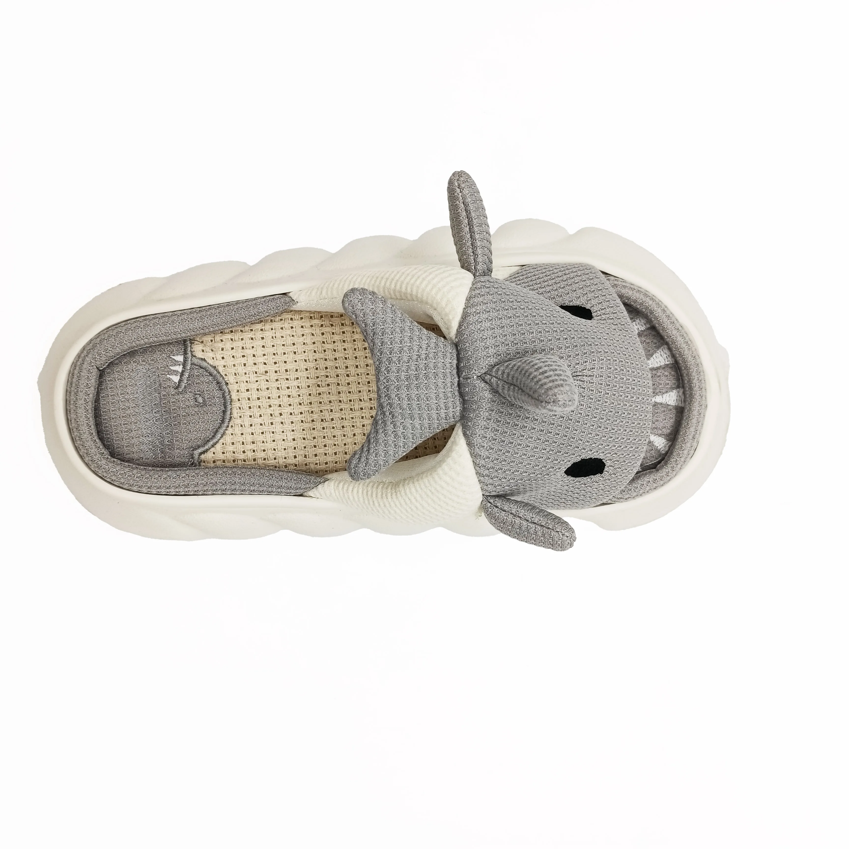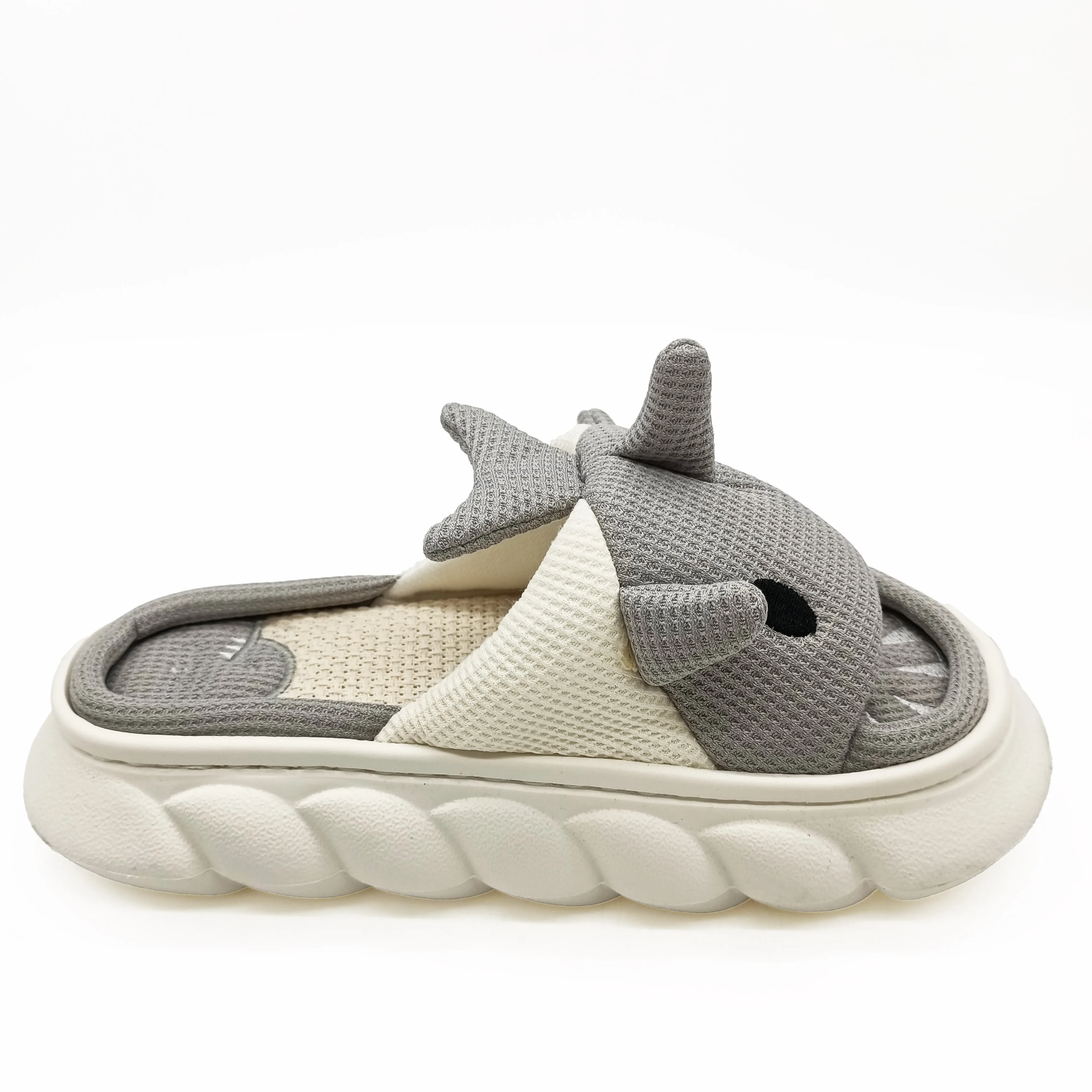 Comfortable Linen Slipper for Women Cute Cartoon Shark Shape Trendy Soft Fabric Insole Massage Breathable Features for Winter