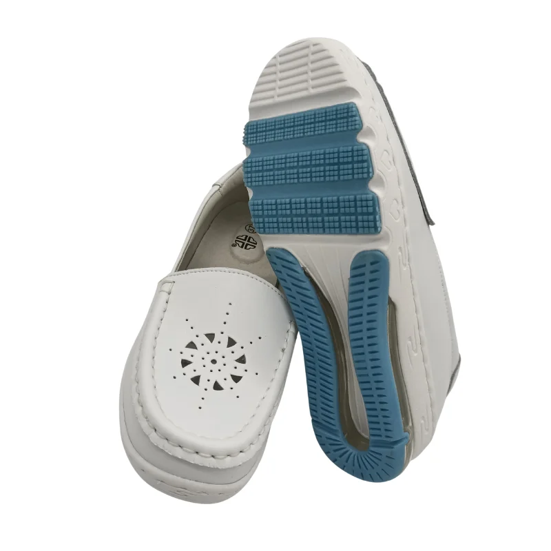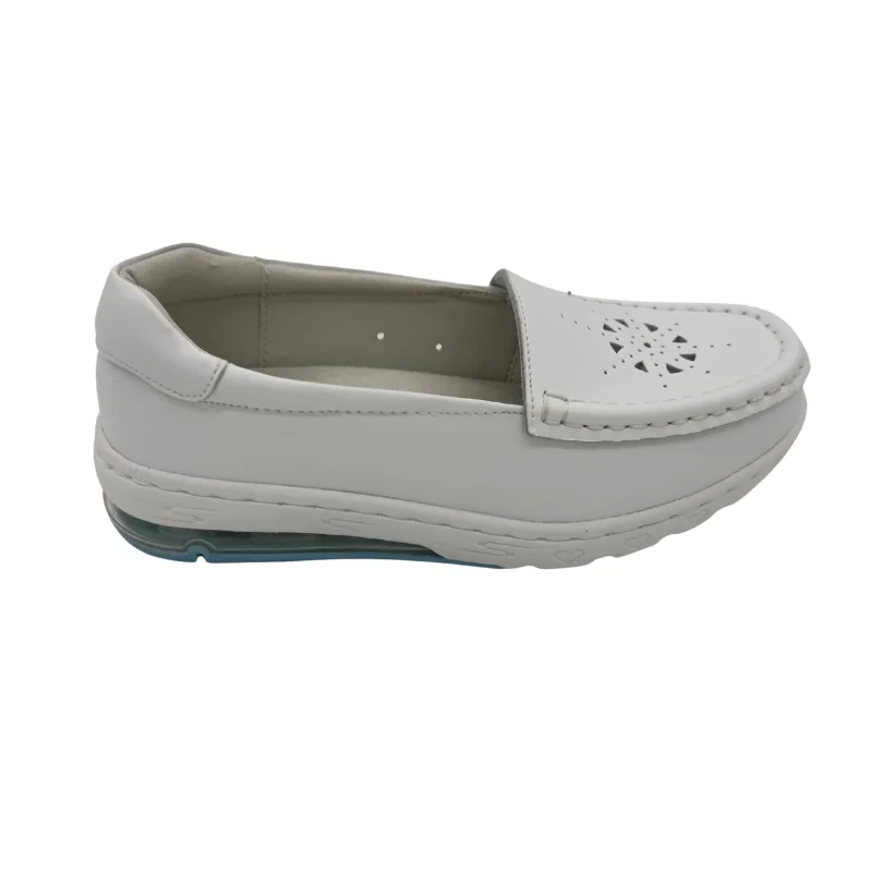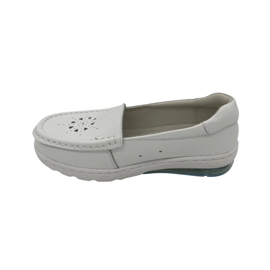 JDS Comfortable White Leather Hospital Nursing Shoes with Air Cushion Anti-Slip for All Seasons-for Work