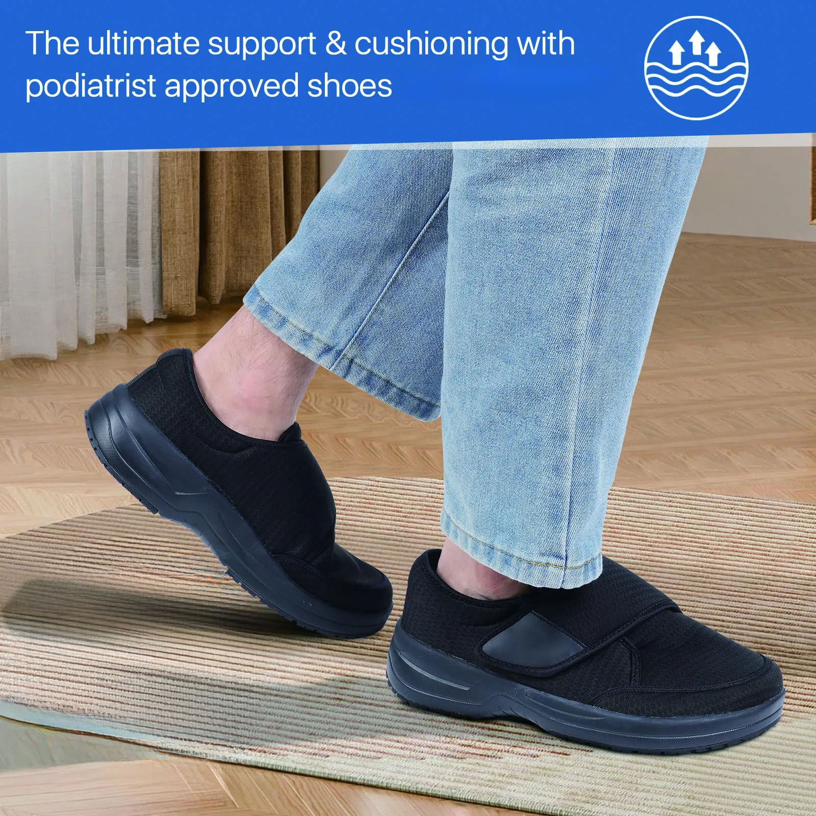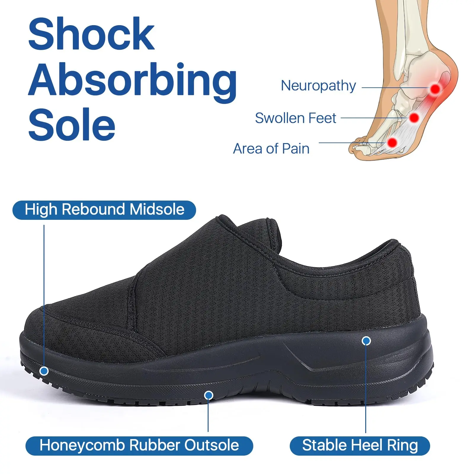 Orthopedic Diabetic Shoes Black Extra Wide Slip on Walking Shoes for Men and Women with Arch Support