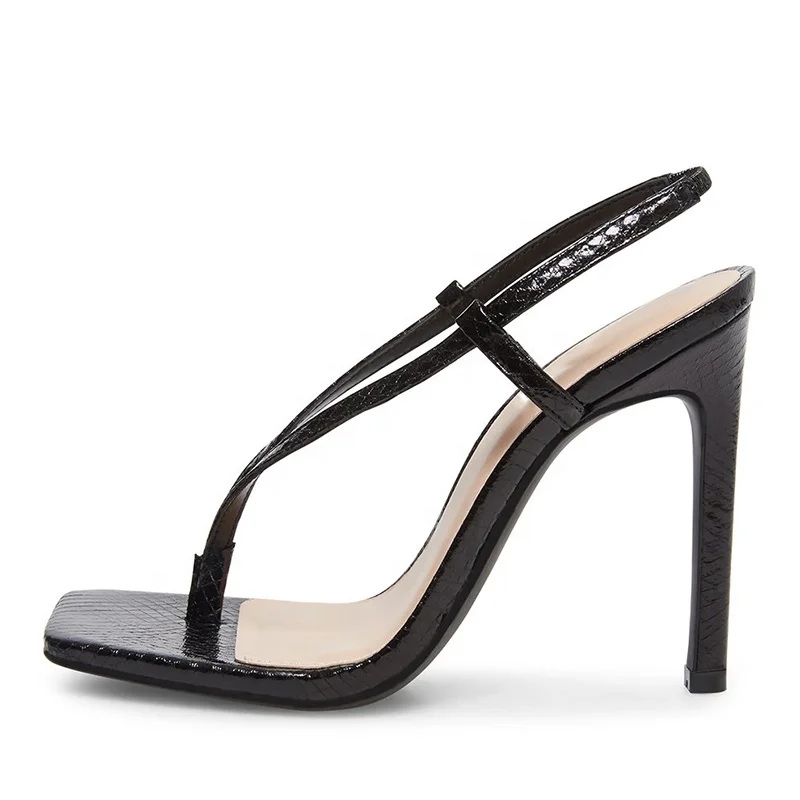 Fashion Trendy Square Toe Flip Flops Stiletto High Heel Sandals Thong Slip on Women Heels