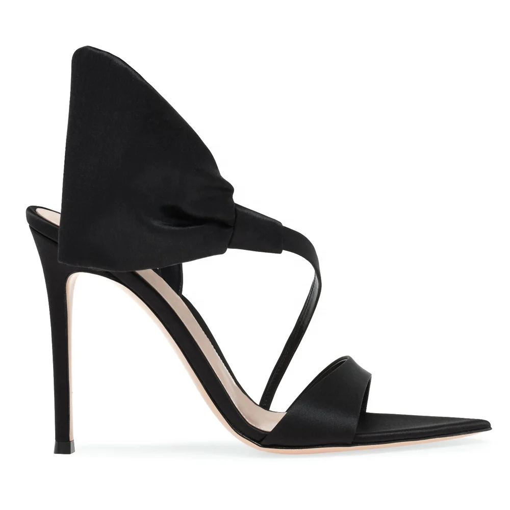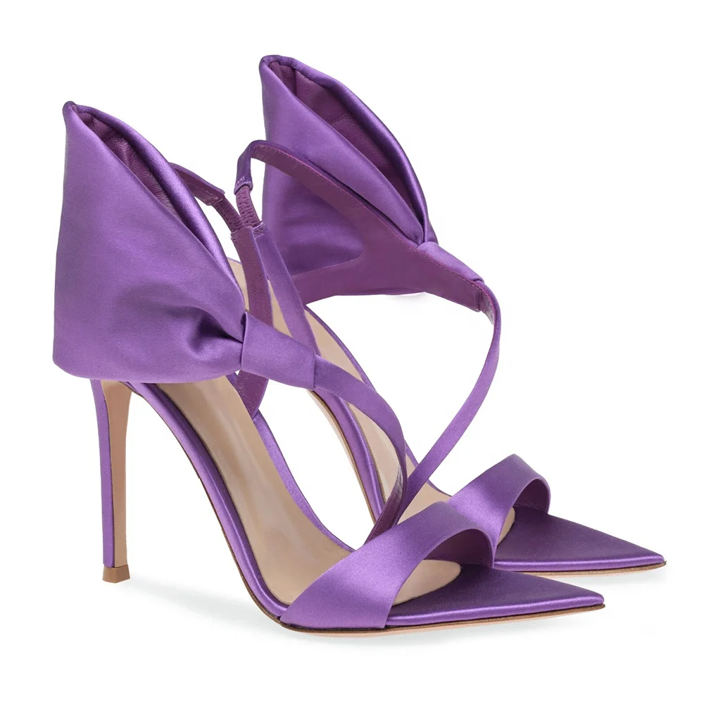 Stiletto Heel Pointed Toe Sandals Black Prom Woman Lilac Satin High Heels With Bow New Arrivals 2023