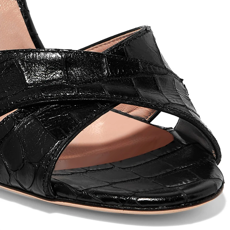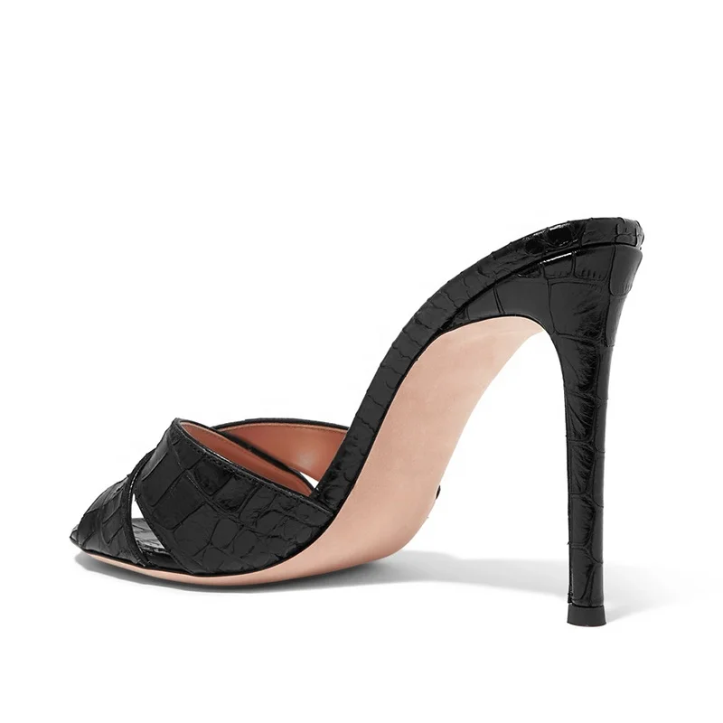2019 Ladies Peep Toe Mules Women Black High Heel Sandals