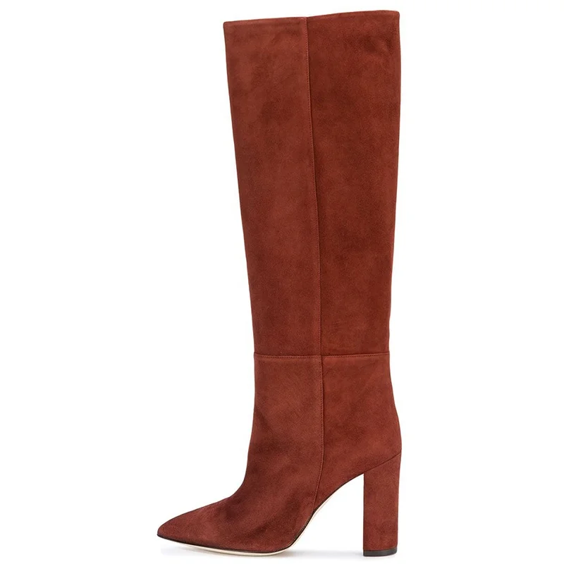 Ladies Winter Shoes 2019 Brown Faux Suede Knee High Boots for Women