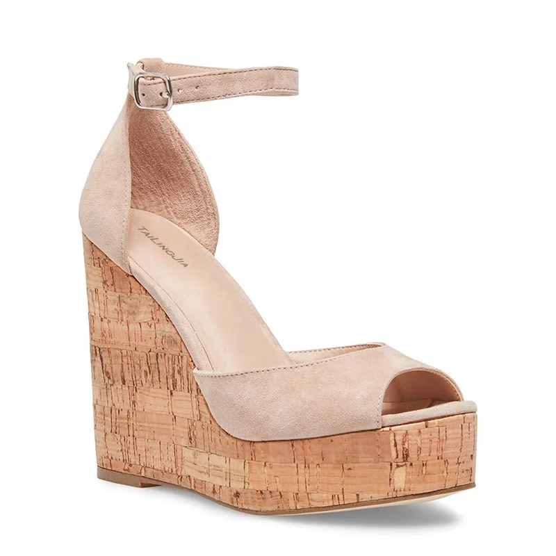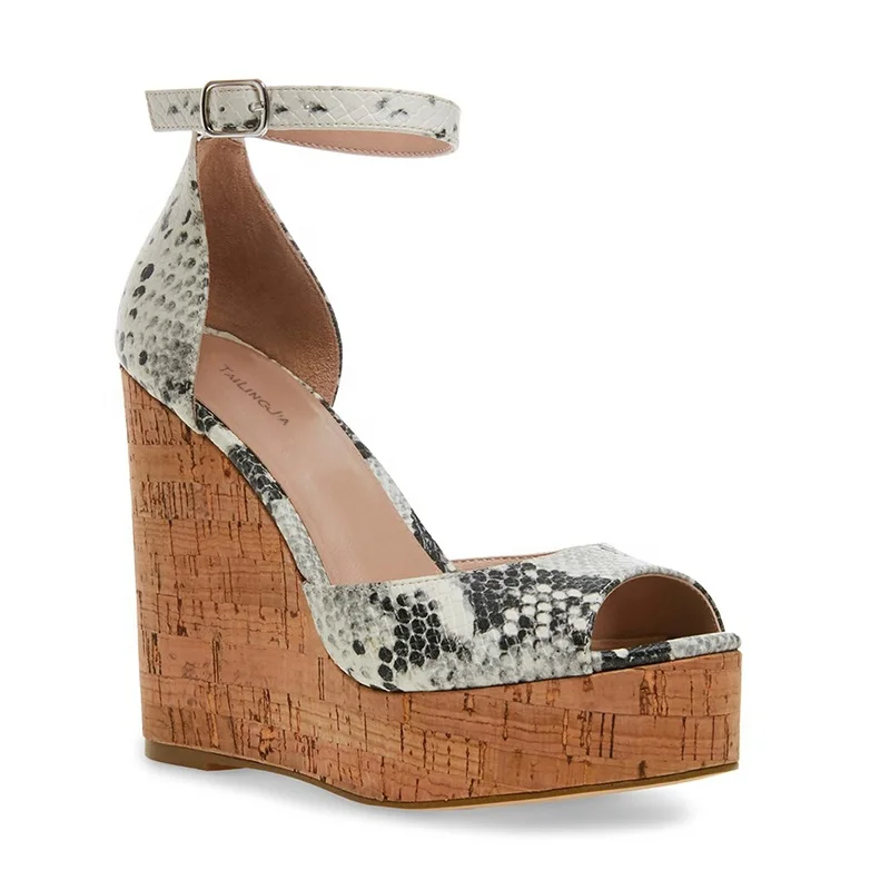 High Quality Summer High Heel Sandals Cork Wedge Platform Peep Toe Buckle Strap Chunky Heels PU Leather for Ladies