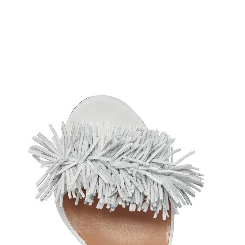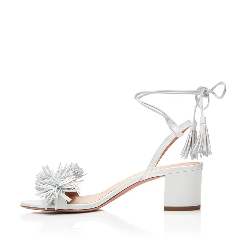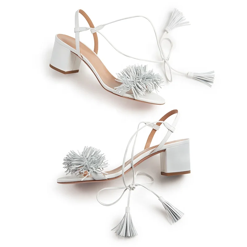Block Heel Sandals with Fringe Women Heeled Tassel Sandal for Ladies