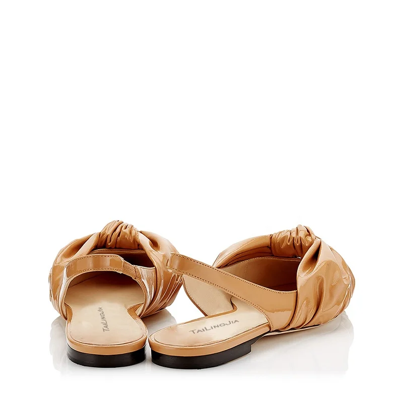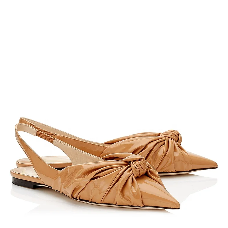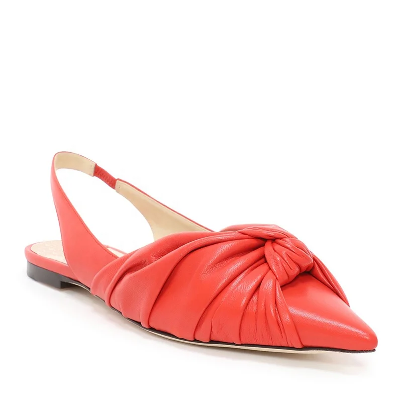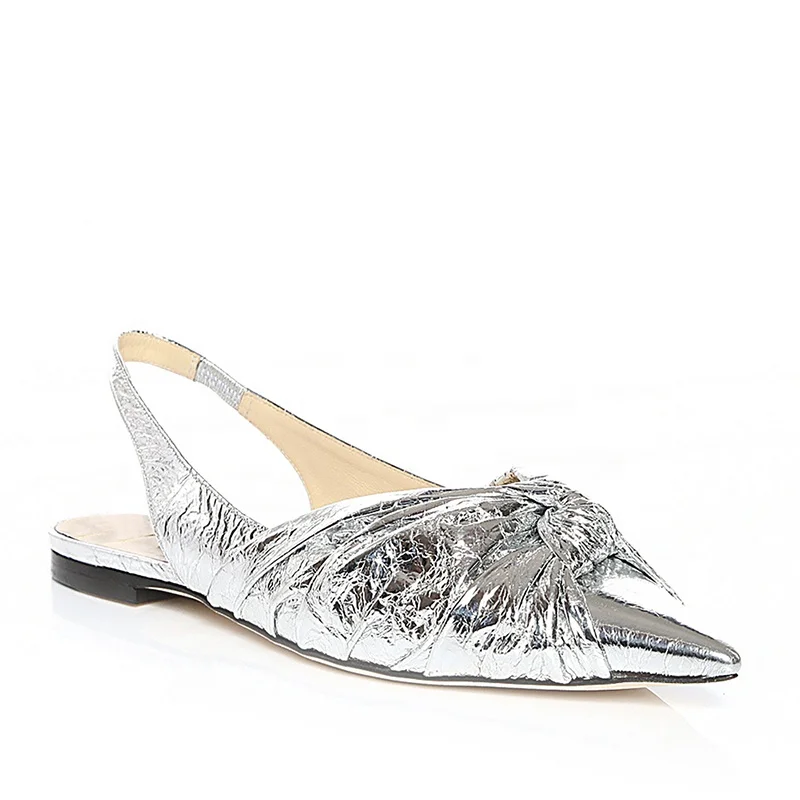 Latest Caramel Sling Back Pointed Toe Flats Women Metallic Silver Summer Shoes Comfort Ladies Red Knotted Flat Slingbacks 2019