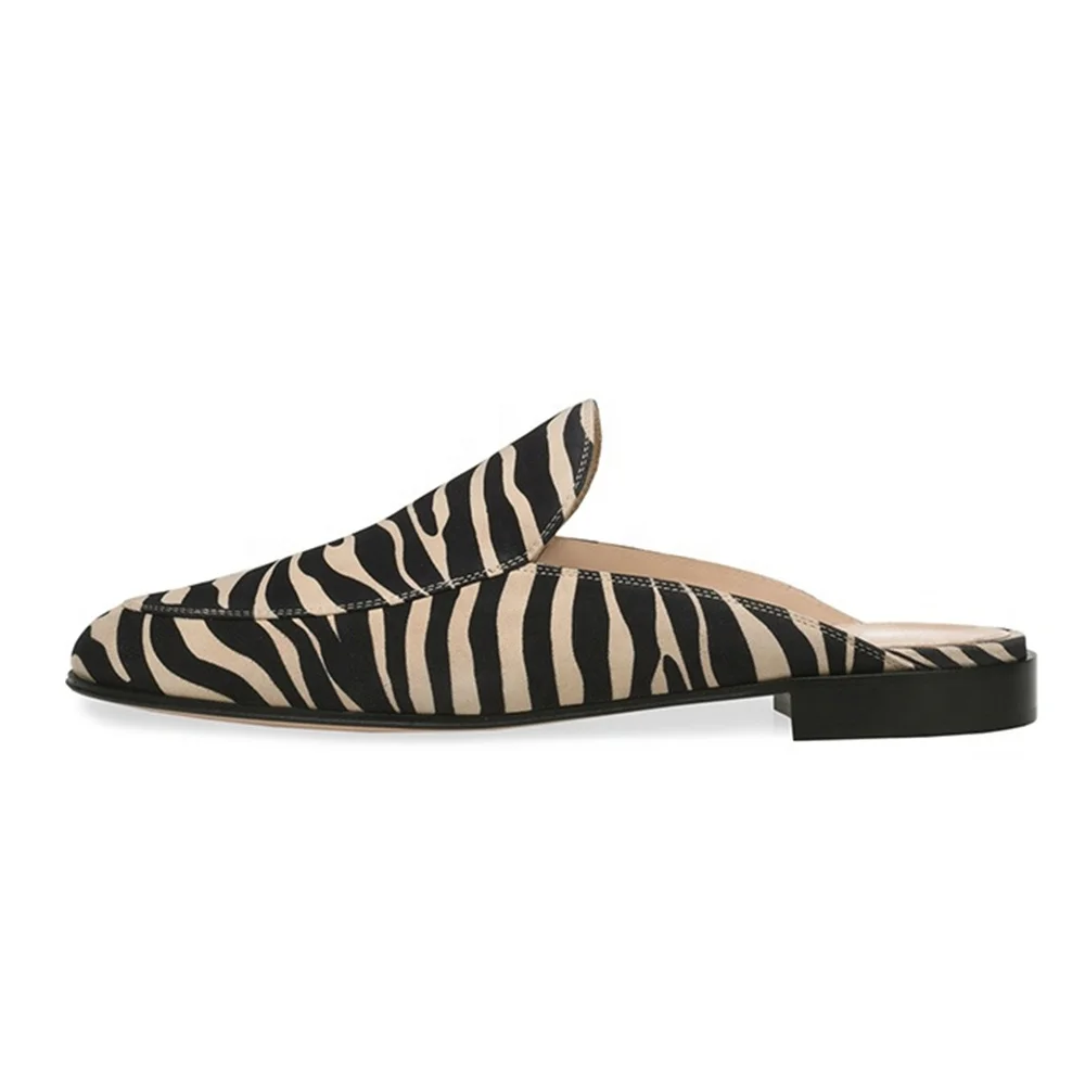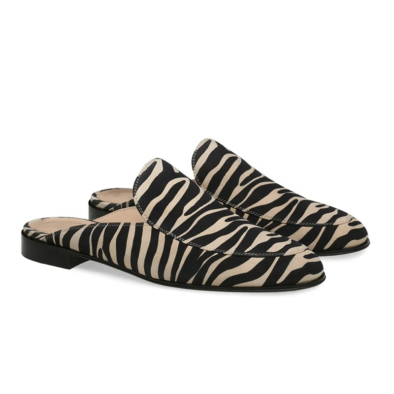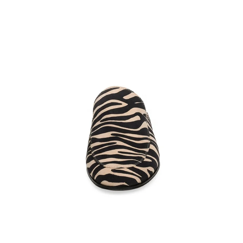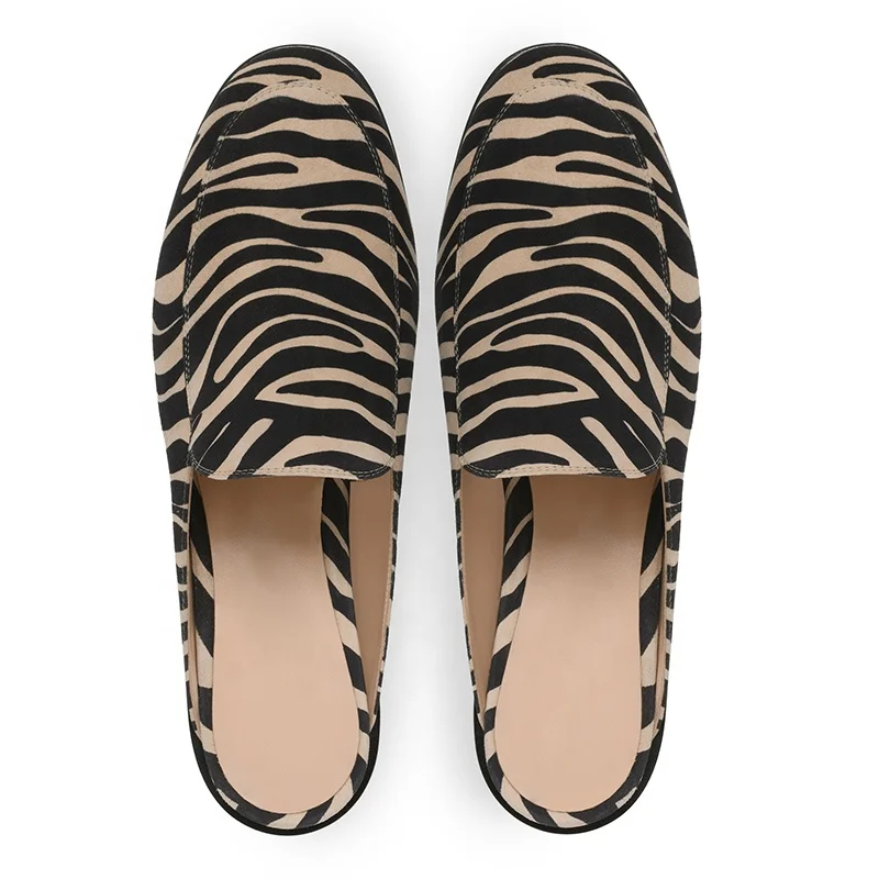 Plus Size Latest Flat Zebra Print Faux Suede Footwear for Women Slippers Mules Half Shoes