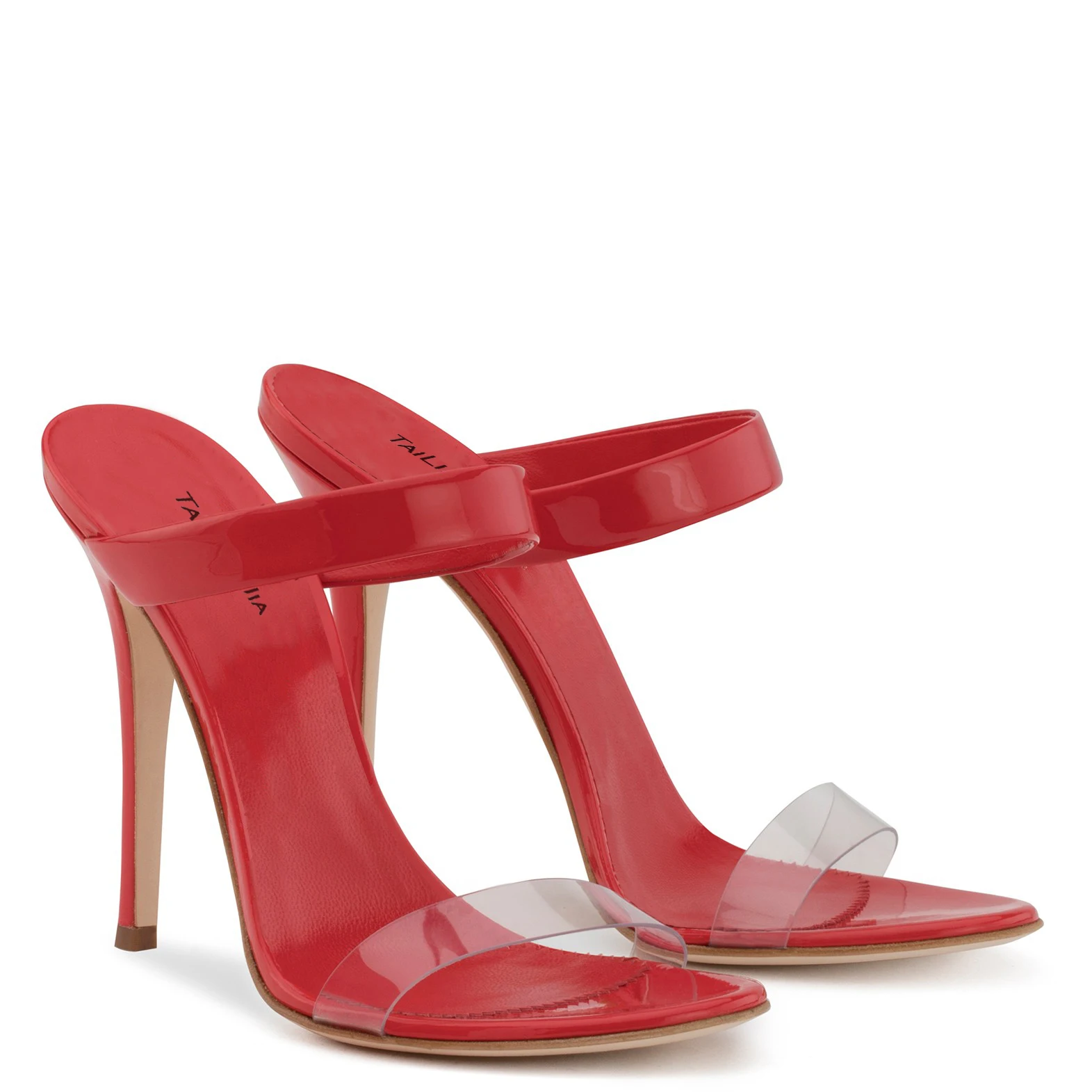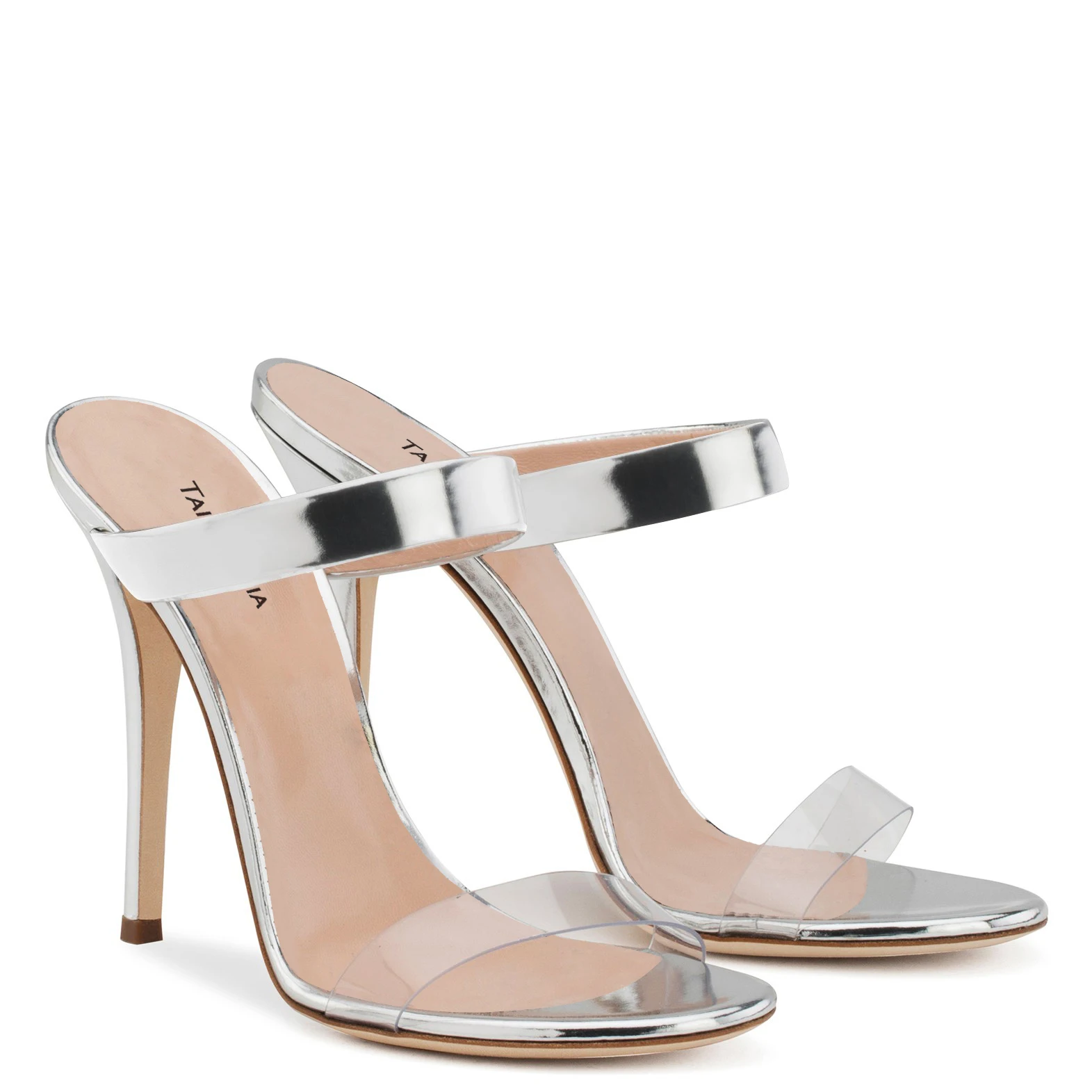 Chengdu Factory Strappy Sandals Silver Stiletto Dress Shoes Summer Heels Red Patent Leather Transparent High Heel Women Mules