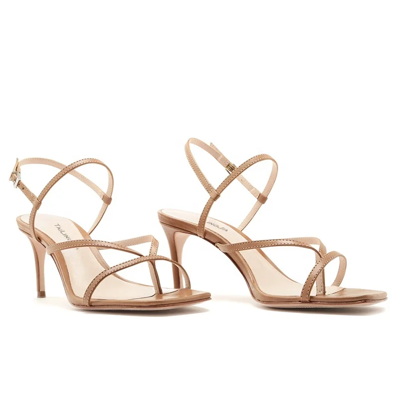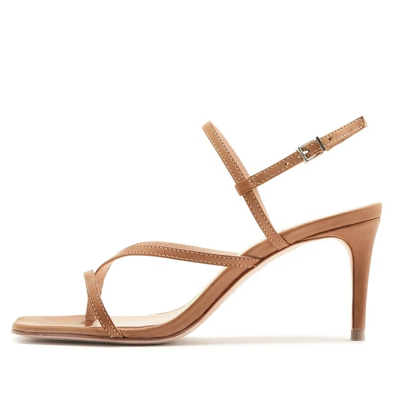 Plus Size Fashion High Heels Ankle Strap Women Shoes Strappy Flip Flops Square Toe Kitten Heel Sandals